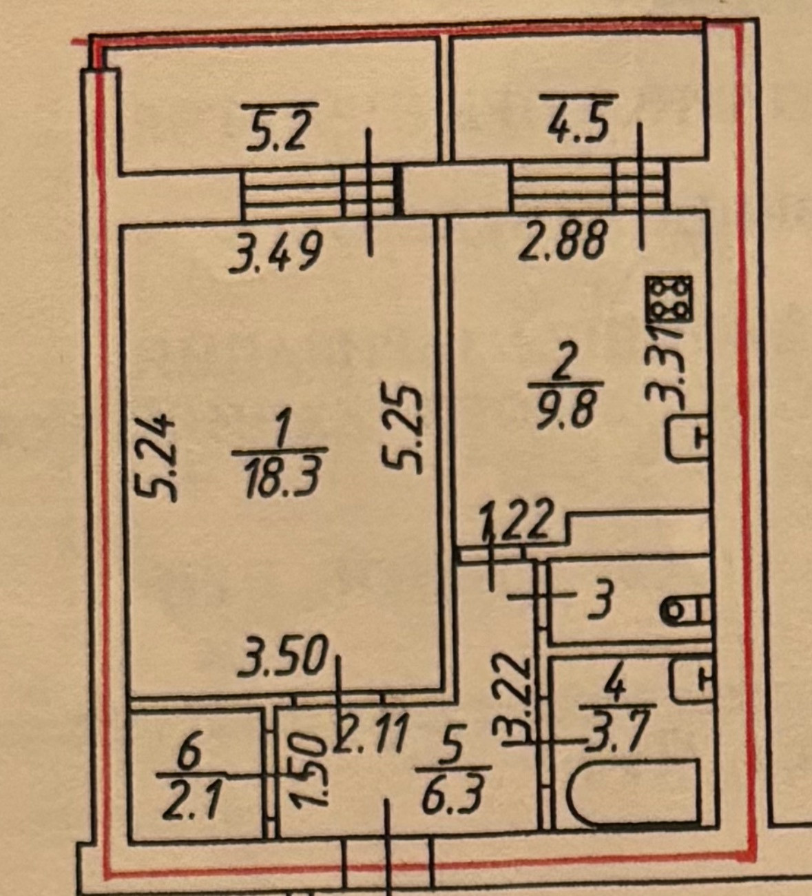 Жилая площадь 18.2 м2