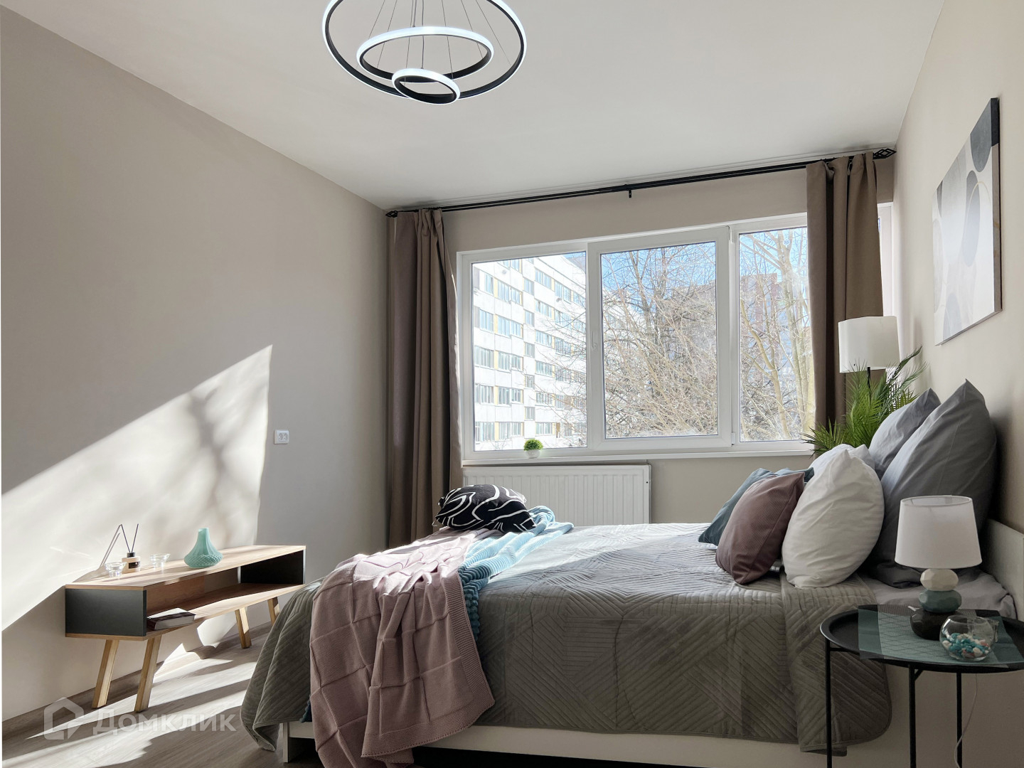 Окна выходят на юго-запад. Квартира светлая и солнечная!