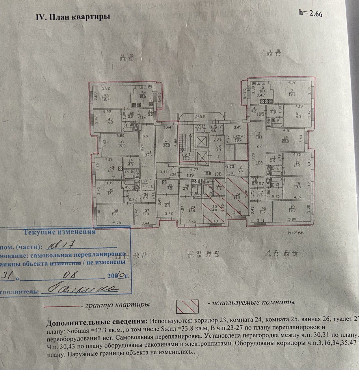 Общая площадь 42.3 м2