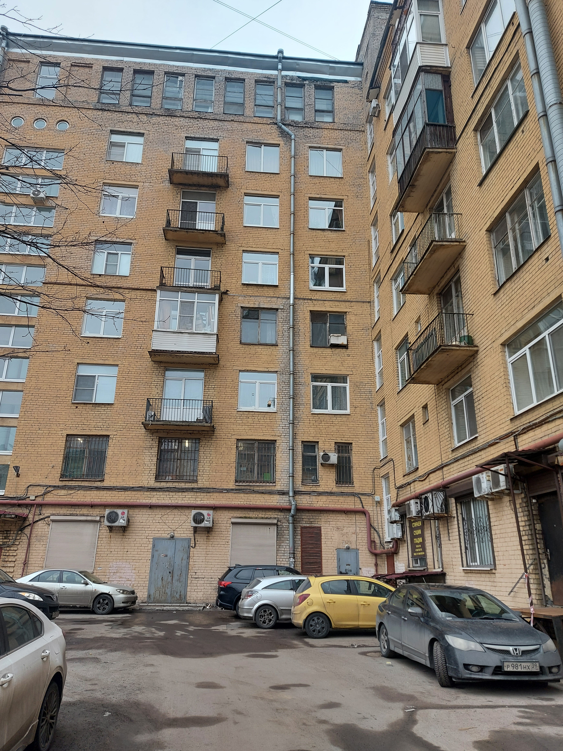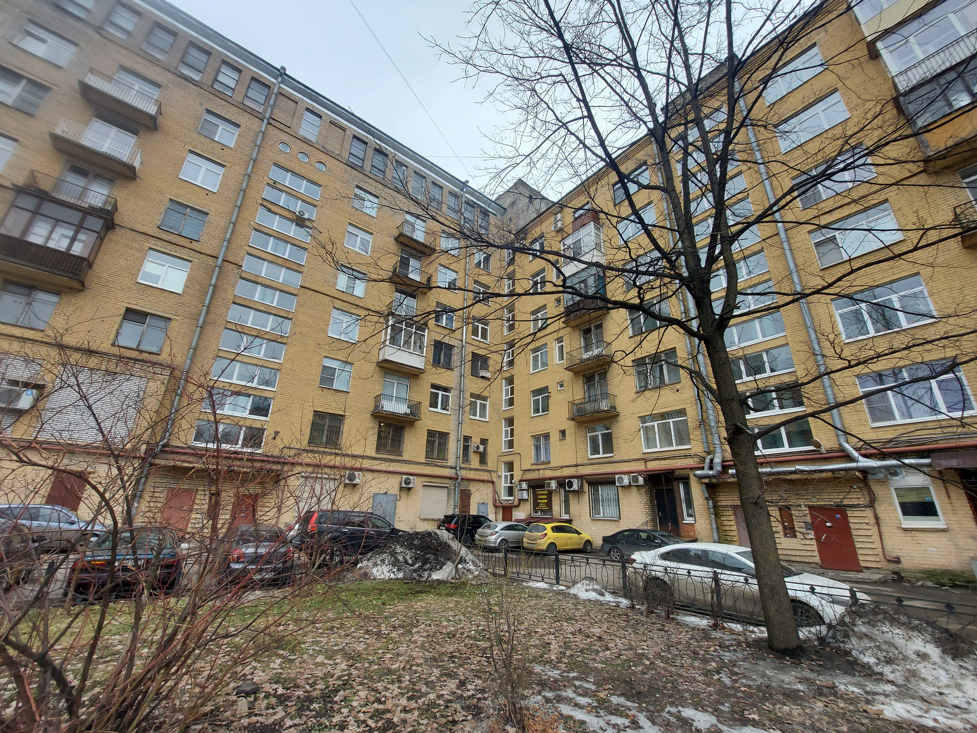 Окна квартиры выходят на две стороны на запад и восток, во двор и на Неву.