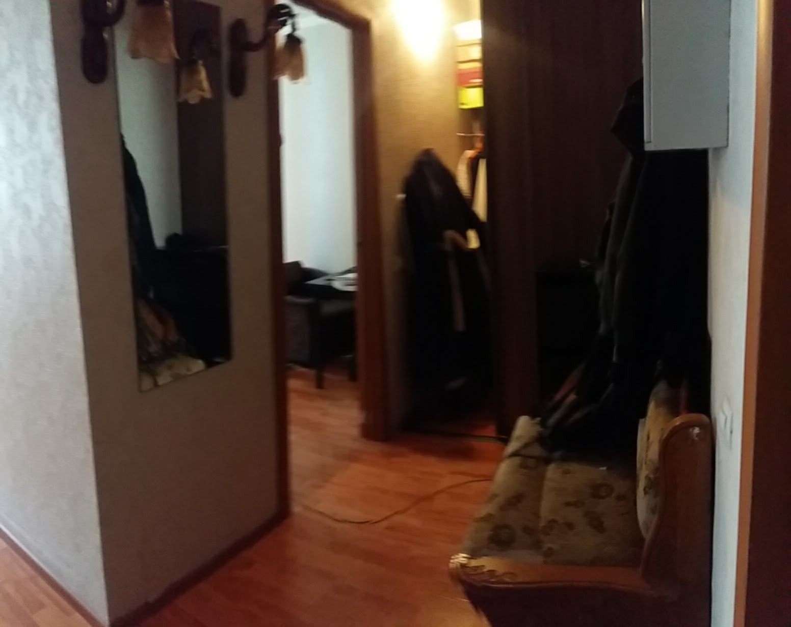 Квартира в хорошем состоянии. Тёплая, - поэтому можно экономить понижая параметры (есть счётчик тепла).  Мебель и техника остаётся покупателю. Гардеробная в прихожей.