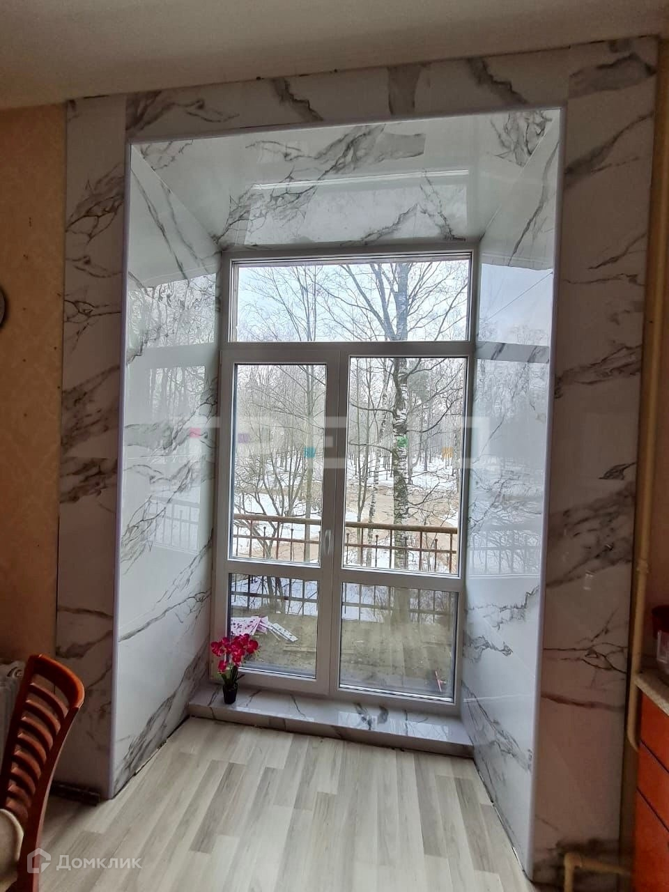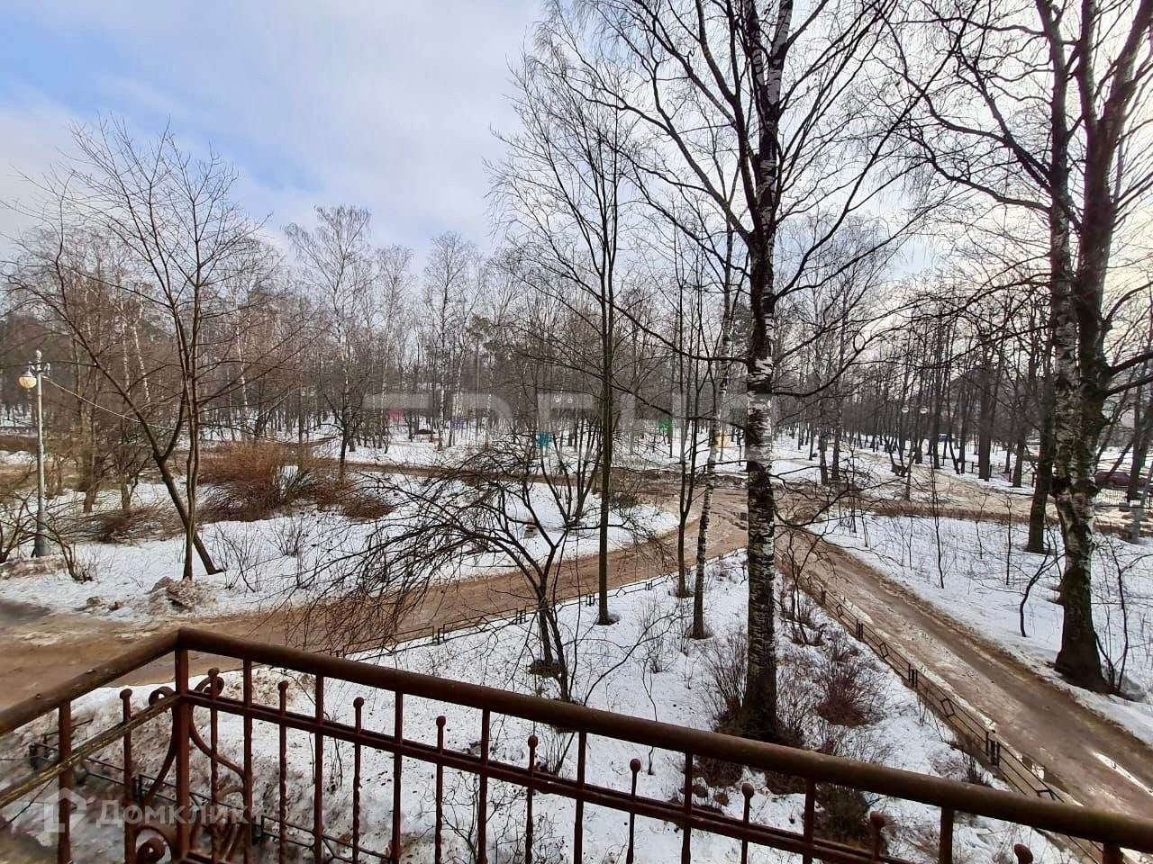 Квартира расположена на территории Санкт-Петербургского политехнического университета Петра Великого, вид из окон и балкона на уютный и чистый парк, в котором имеется множество небольших тропинок, из-за чего создается впечатление, будто прогулка проходит где-то в глубине чащи леса.
