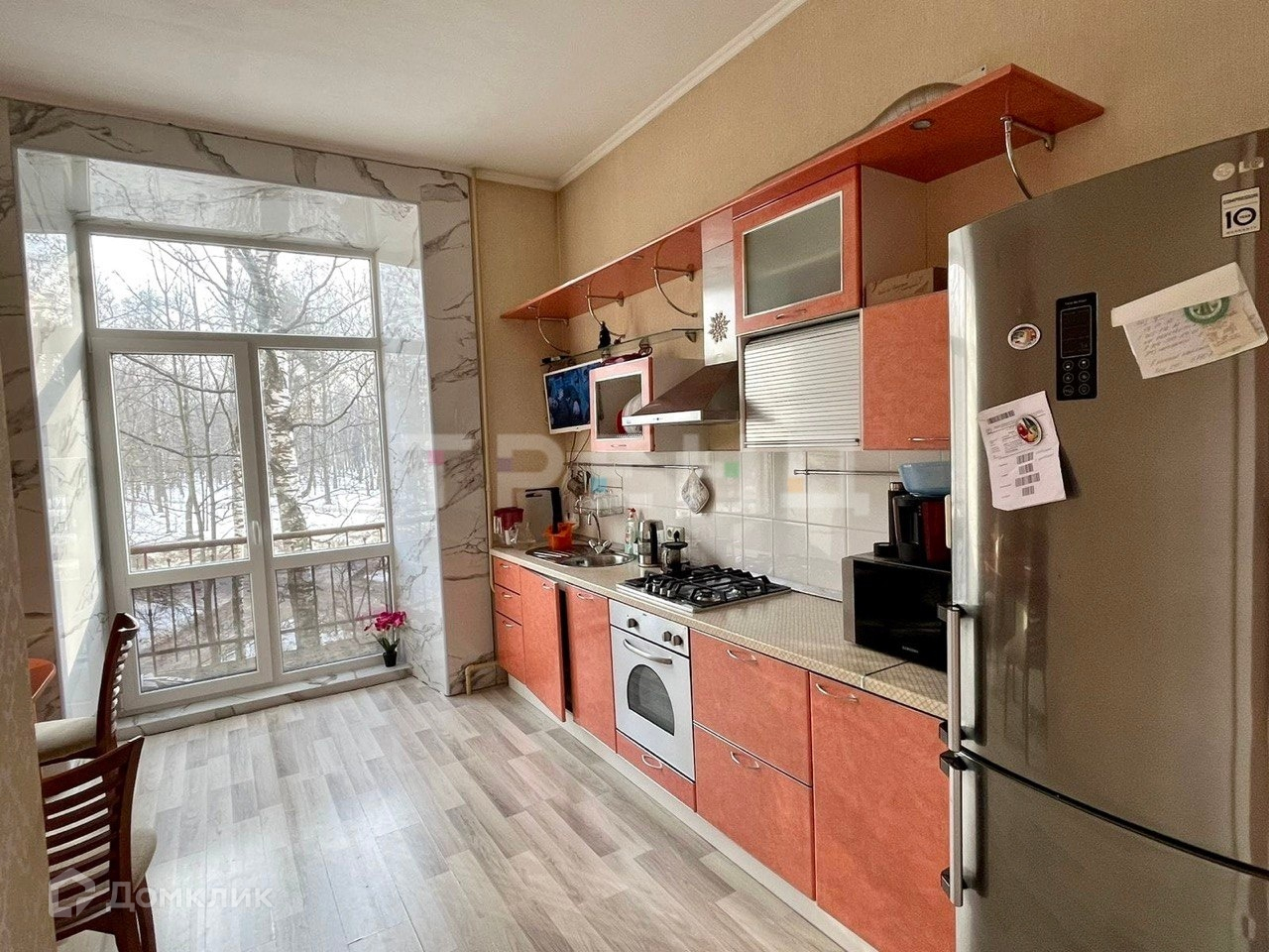 Кухня с выходом на балкон, газовая плита.