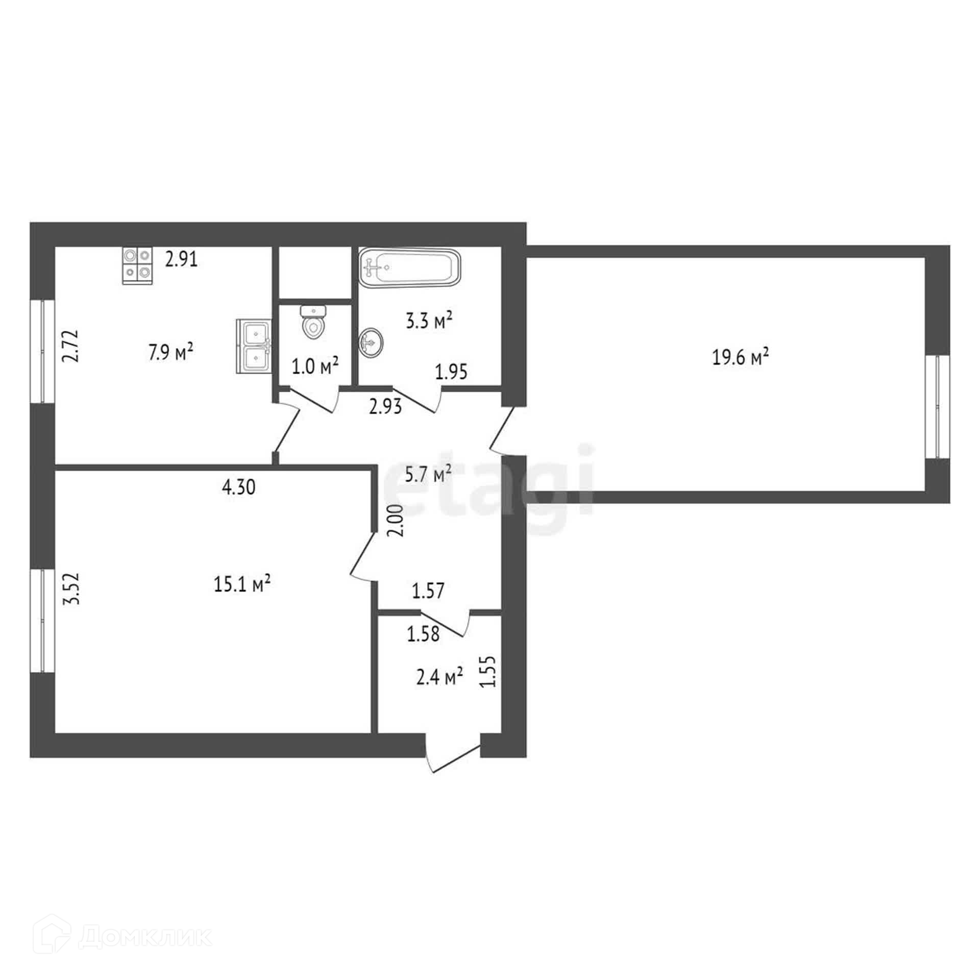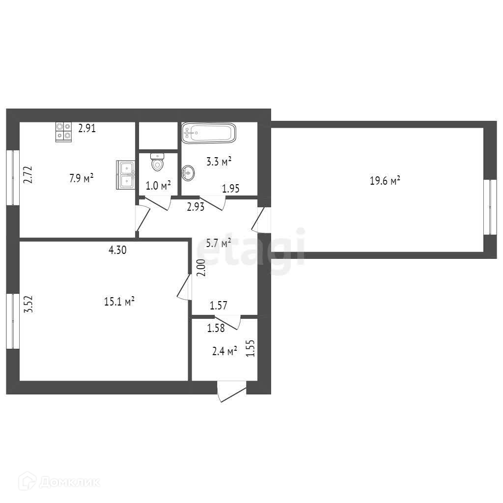 Общая площадь 55 м2