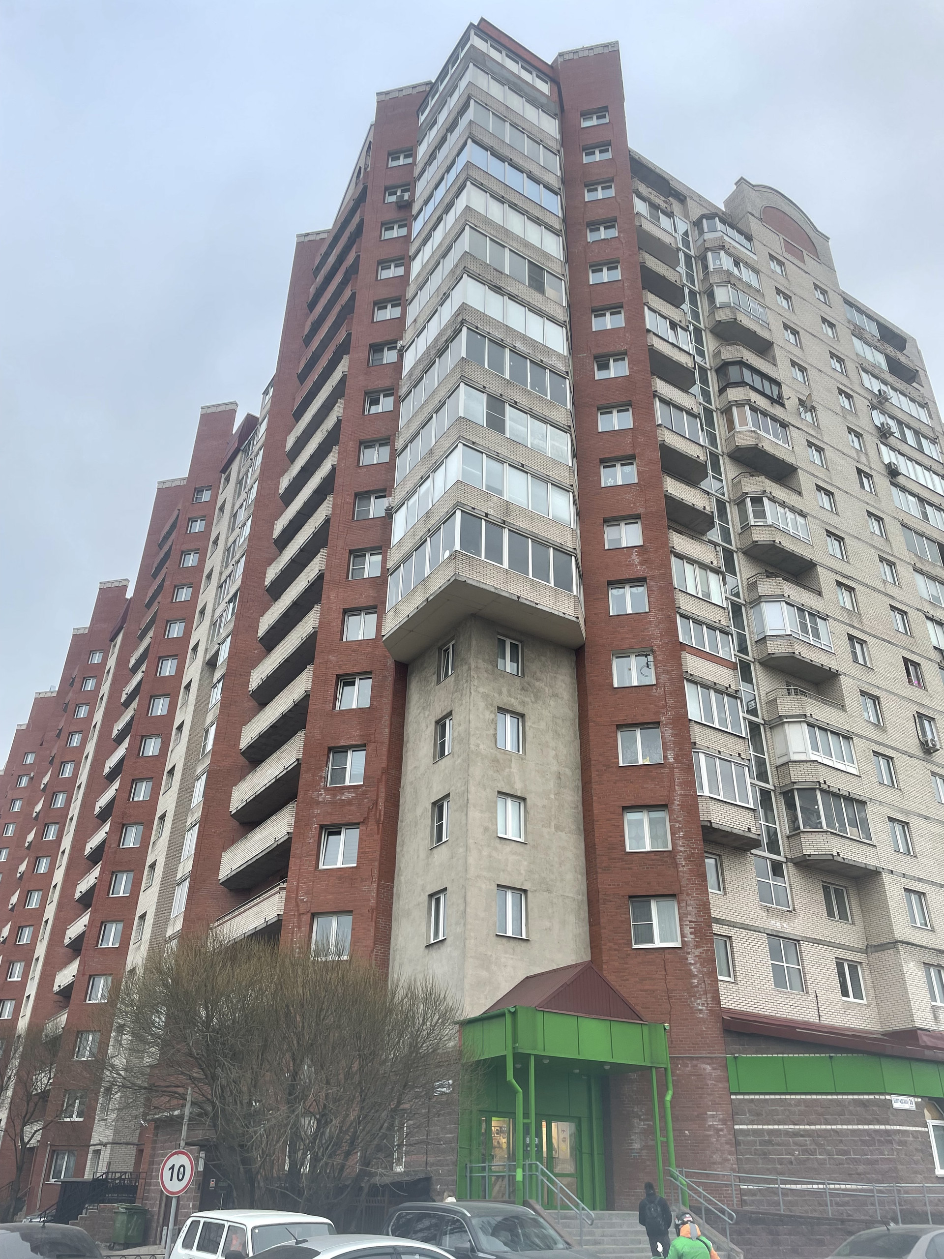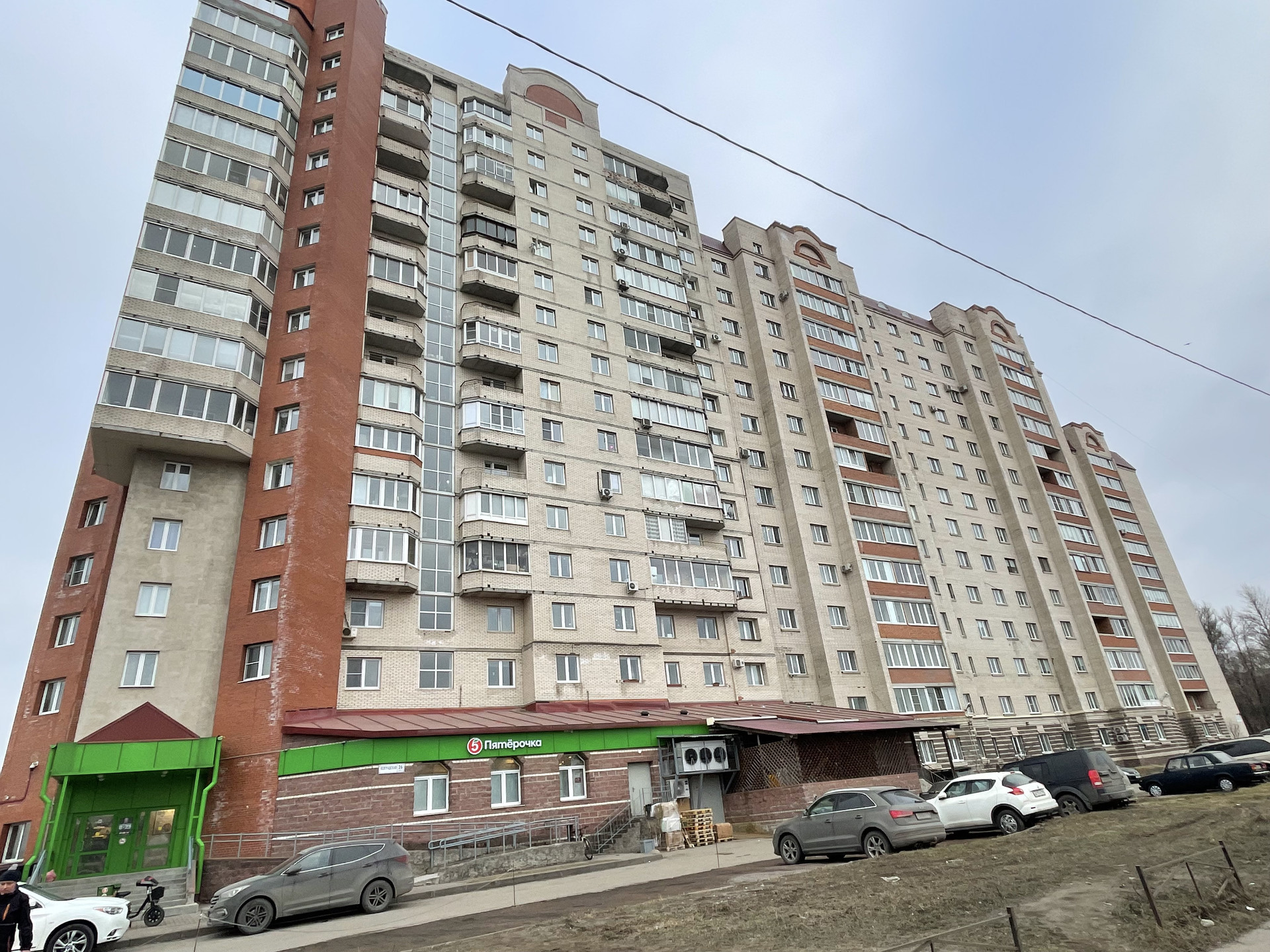 В самом доме магазин Пятерочка и кофейня. Парковка для а/м во дворе.
