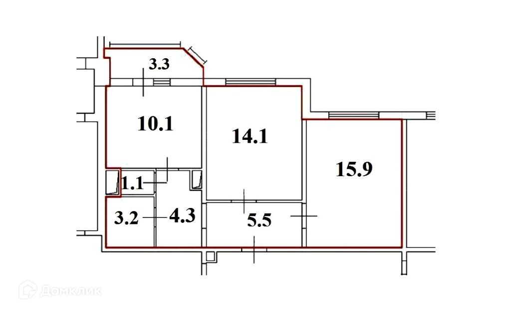 Общая площадь 54.2 м2