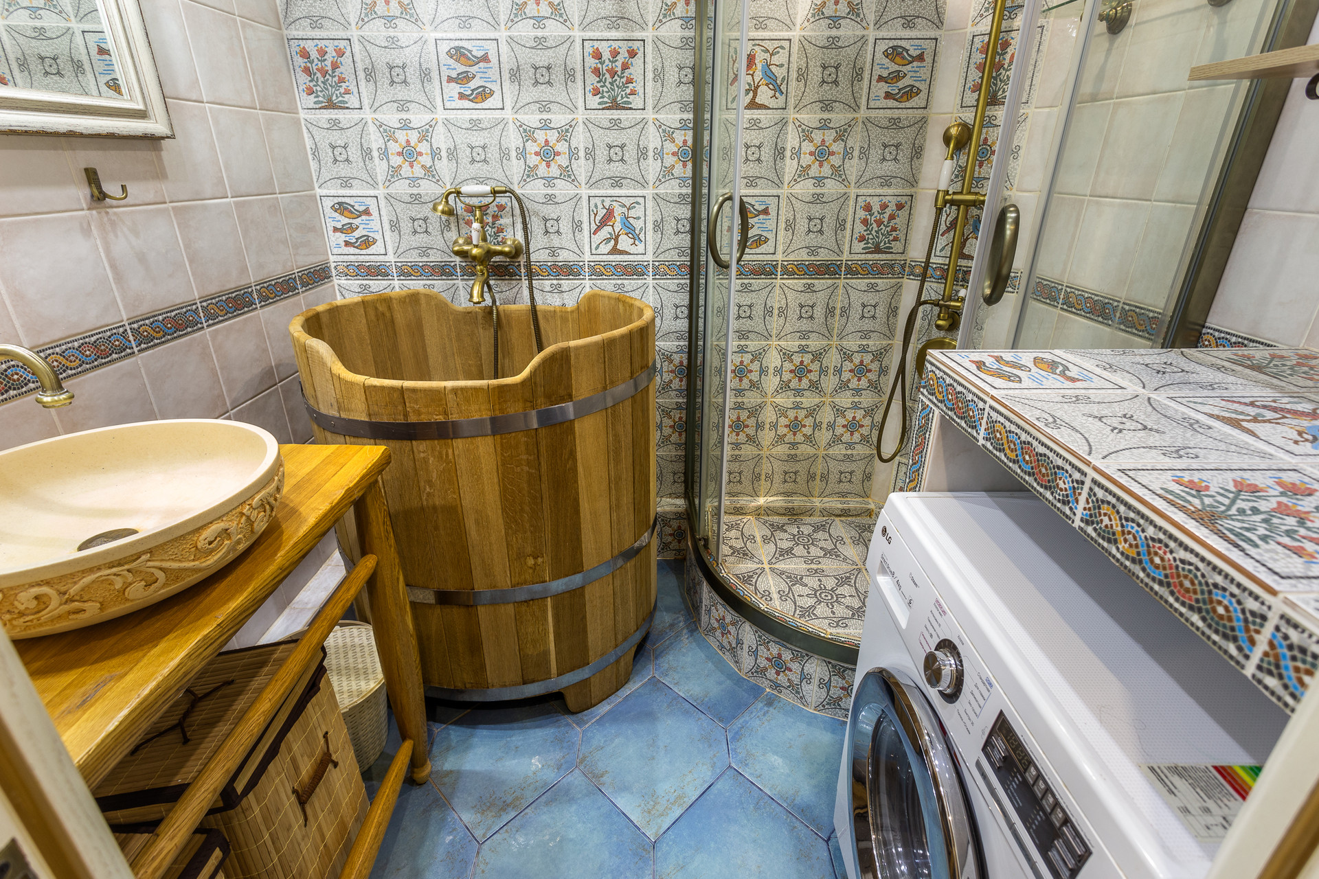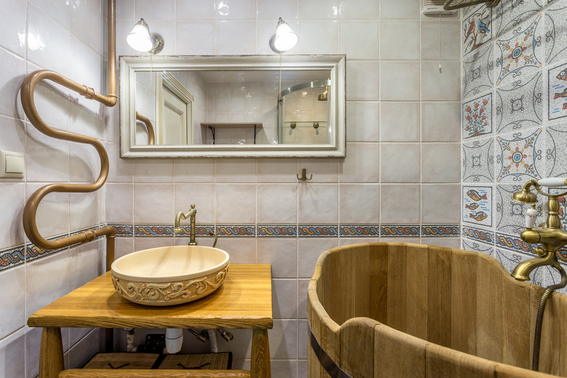 дубовая кадка в ванной