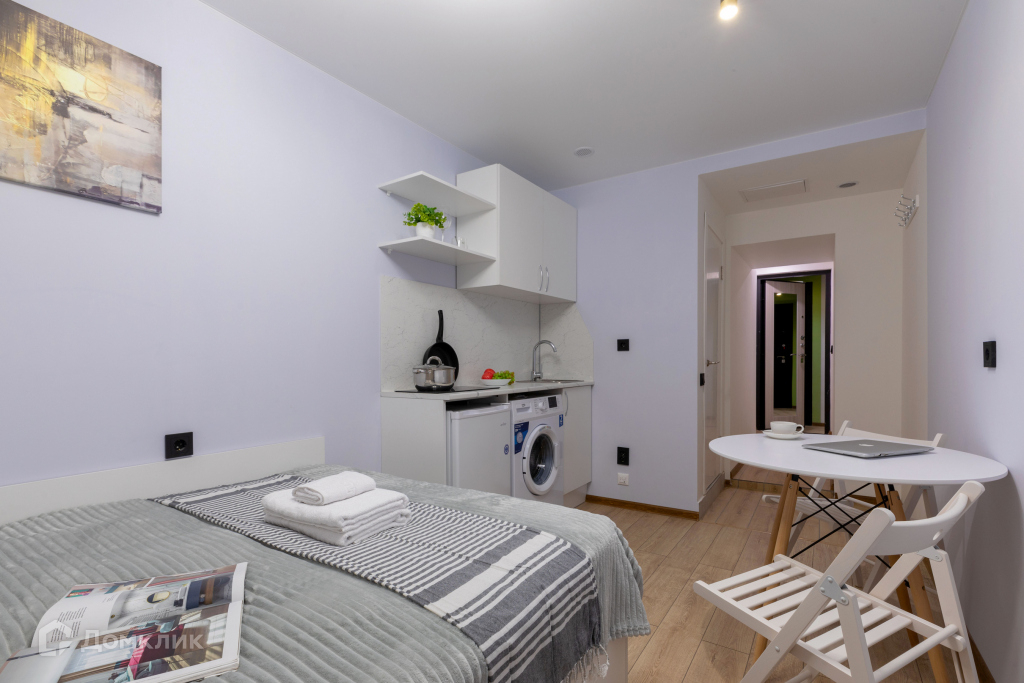 В студии сделан новый ремонт, имеется вся мебель и бытовая техника как на фото. Раздельный сан.узел. Также объект продаётся со всеми предметами быта для сдачи в аренду, дополнительно приобретать Вам ничего не придётся.
