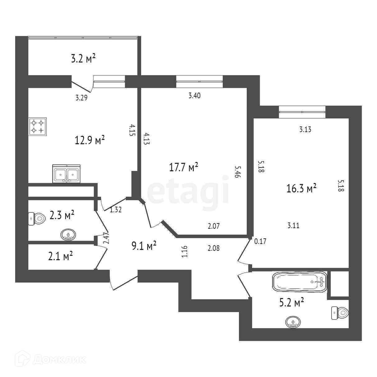 - удобная планировка с большой кухней, двумя санузлами и отдельным гардеробом;