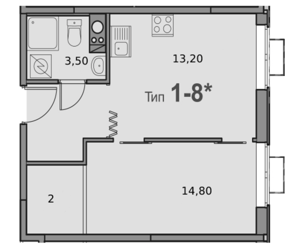 Площадь кухни 13.2 м2