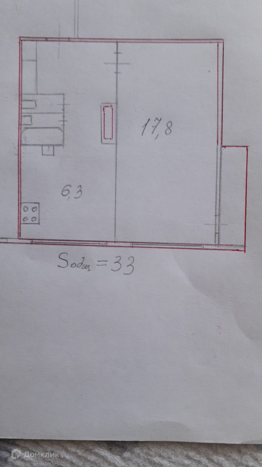 Общая площадь 33 м2