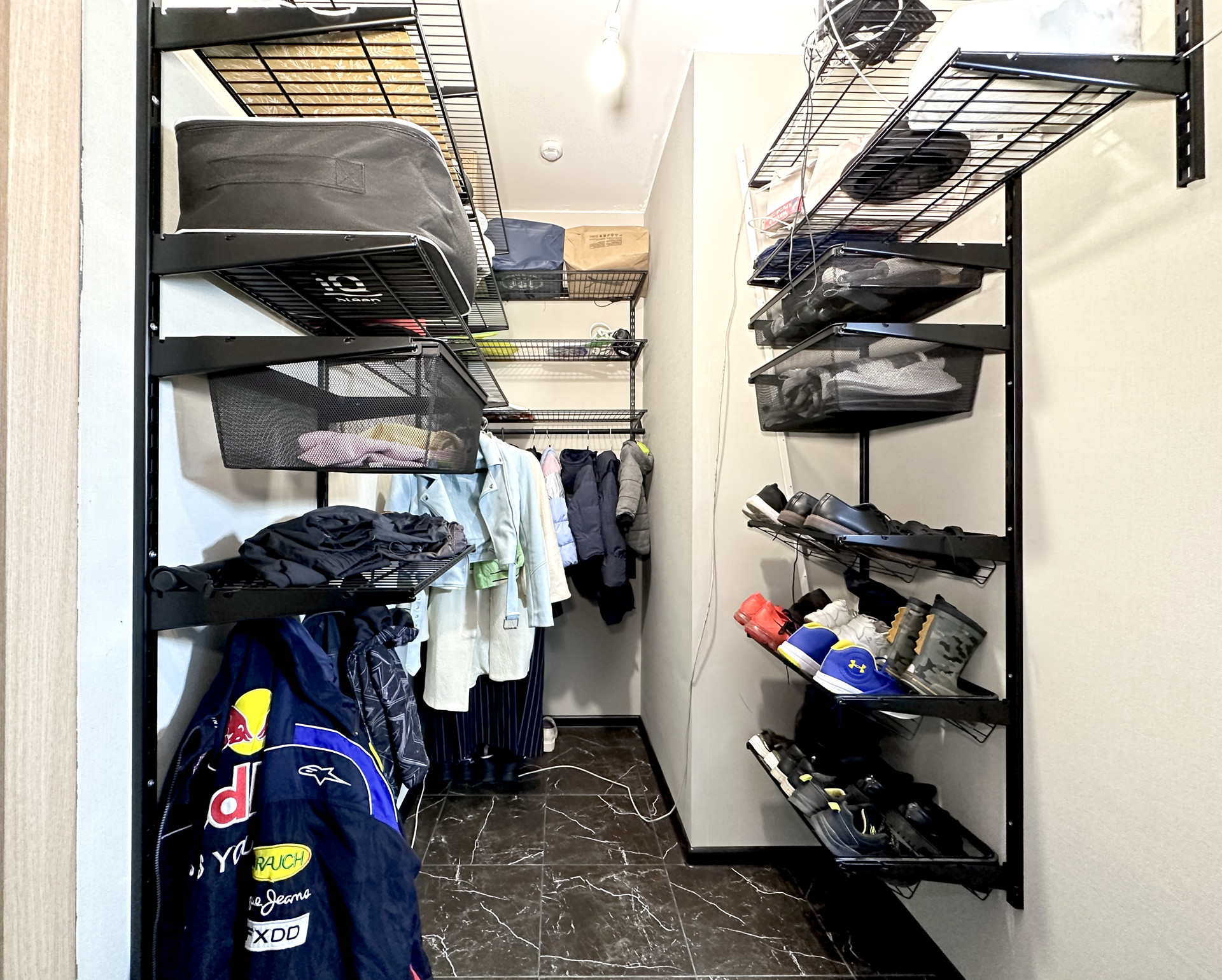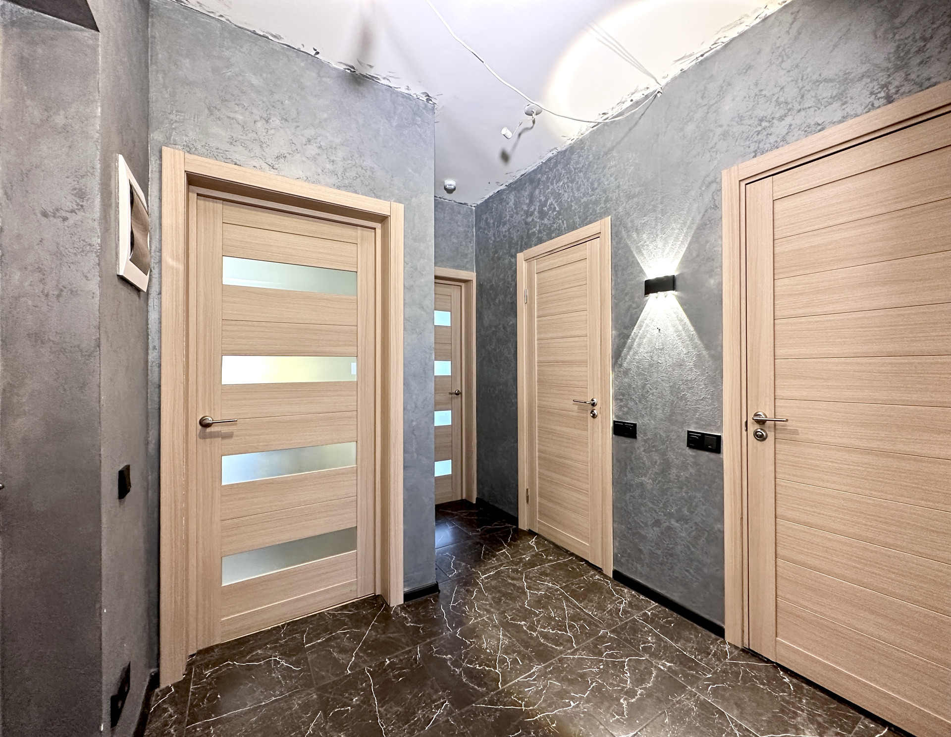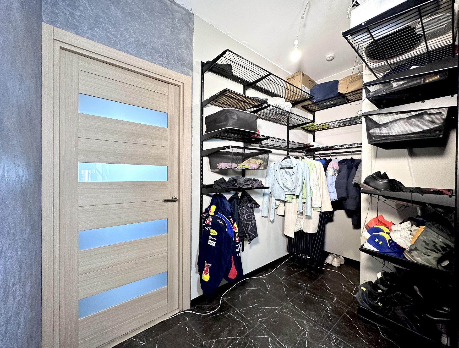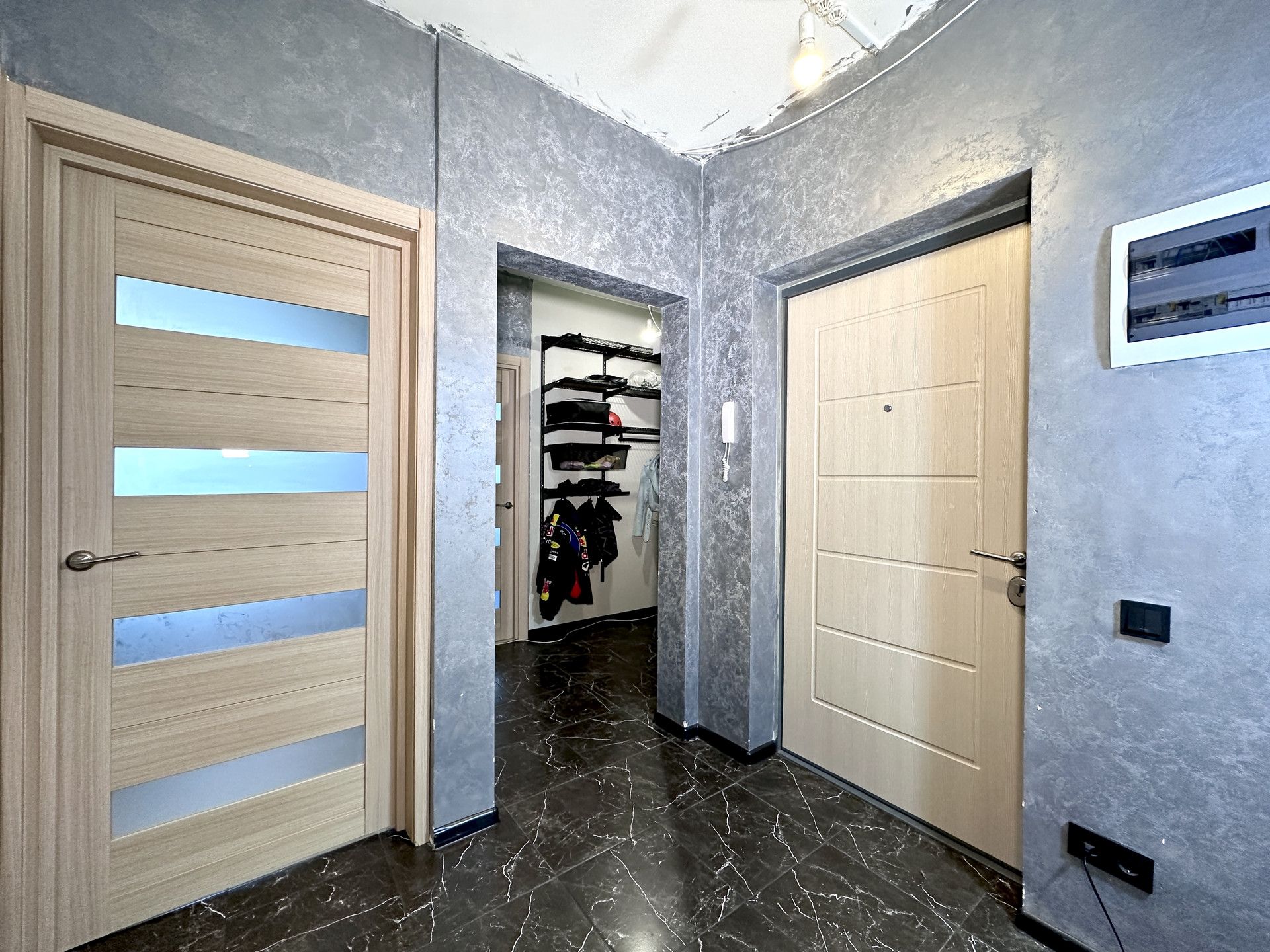 - В коридоре оборудована огромная гардеробная зона