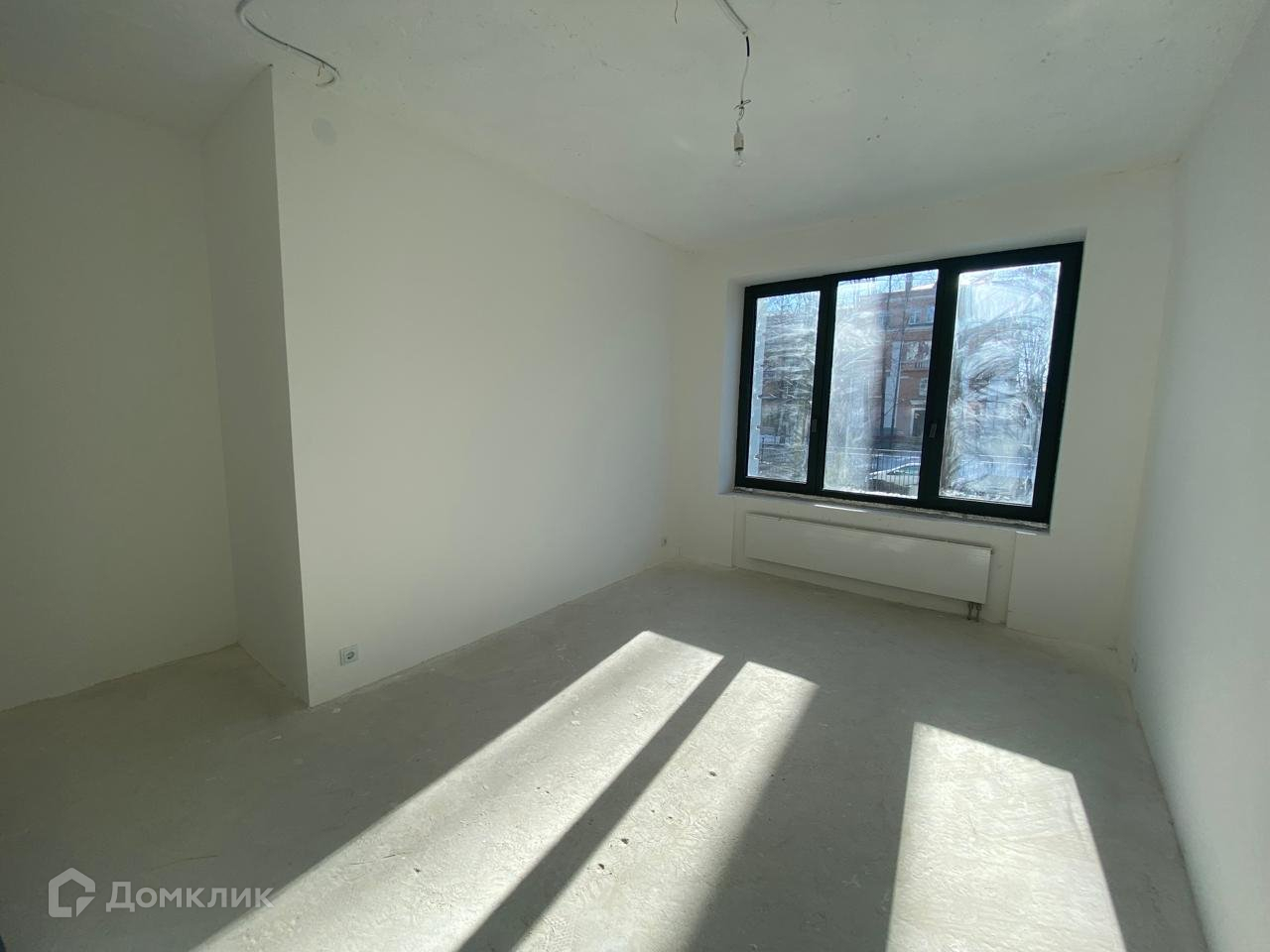 Отделка подчистовая.На полах стяжка и гидроизоляция,стены выровнены и оштукатурены,выведены розетки,алюминиевые стеклопакеты на окнах,радиаторы тепла,вывод по сан.технику.