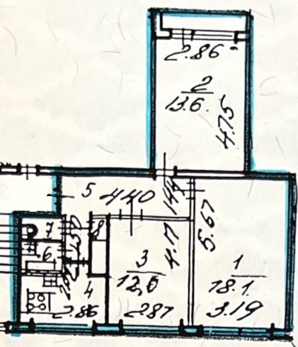 Жилая площадь 43.7 м2