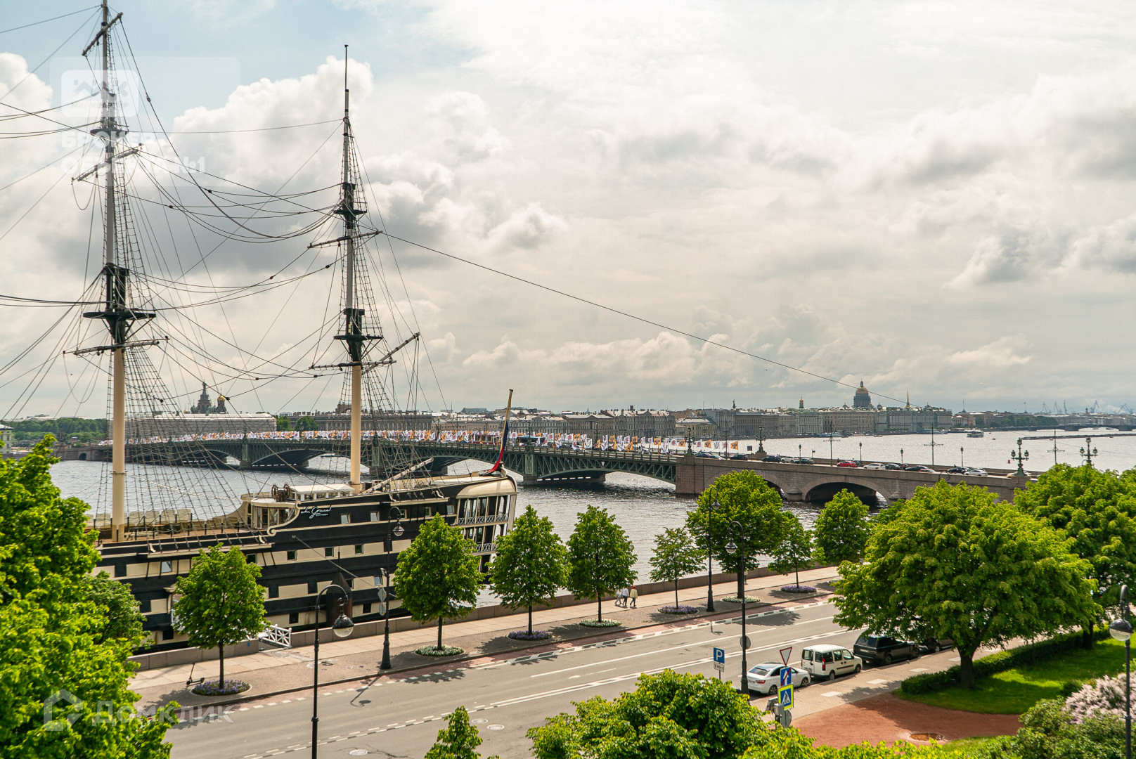 Ключевая ПАНОРАМА города - водные просторы Невы и Петровской набережной, огни большого города. С балкона квартиры великолепный обзор акватории Невы, шоу Аллых парусов и зарева фейверков,  сад Троицкой площади, вид на Соборную мечеть и старый город Петроградской стороны.