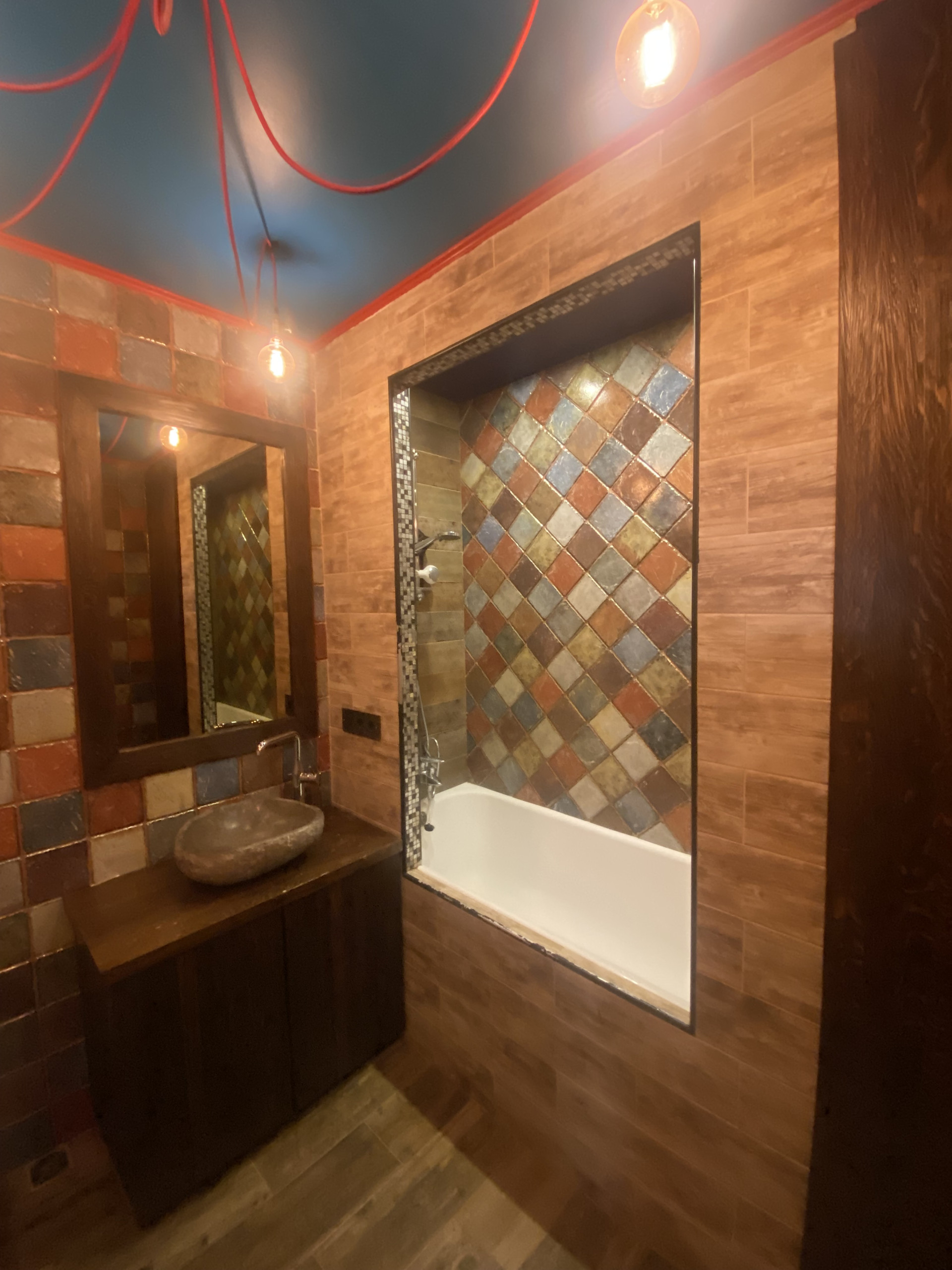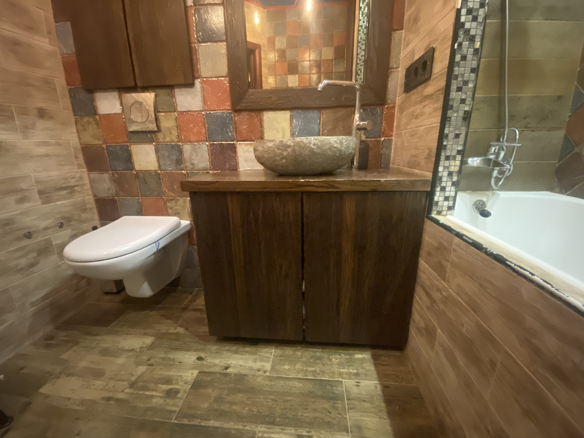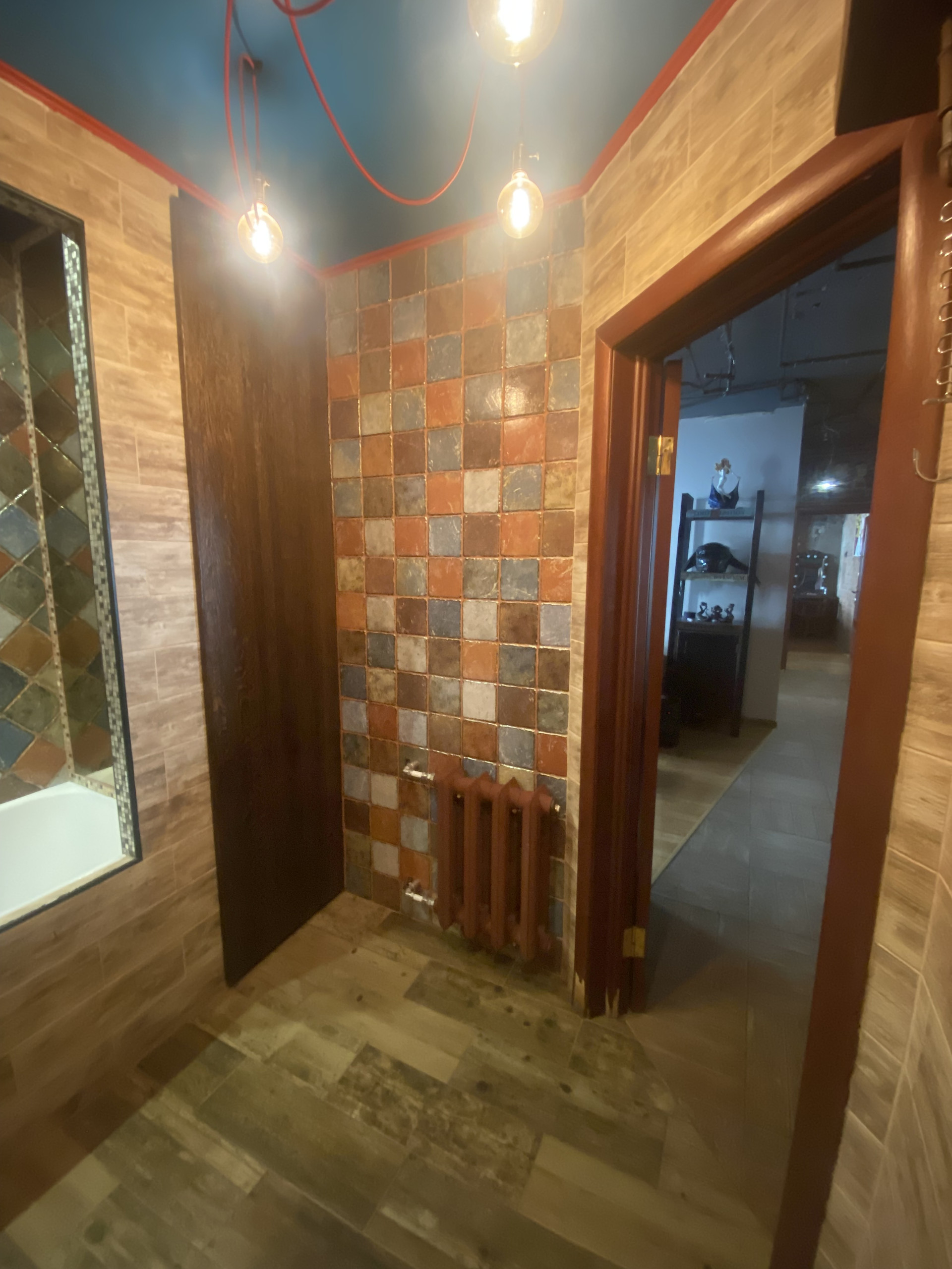 Вся квартира со стильным дизайном (см. фото), хорошей качественной мебелью (присутствуют предметы сделанные по индивидуальному заказу) и техникой. Пол – качественная плитка (мозайка), инженерная доска, входная зона, зона кухни и санузла с подогревом. Полноценная ванная комната (санузел хоть и совмещенный, но очень просторный и стильно оборудован).