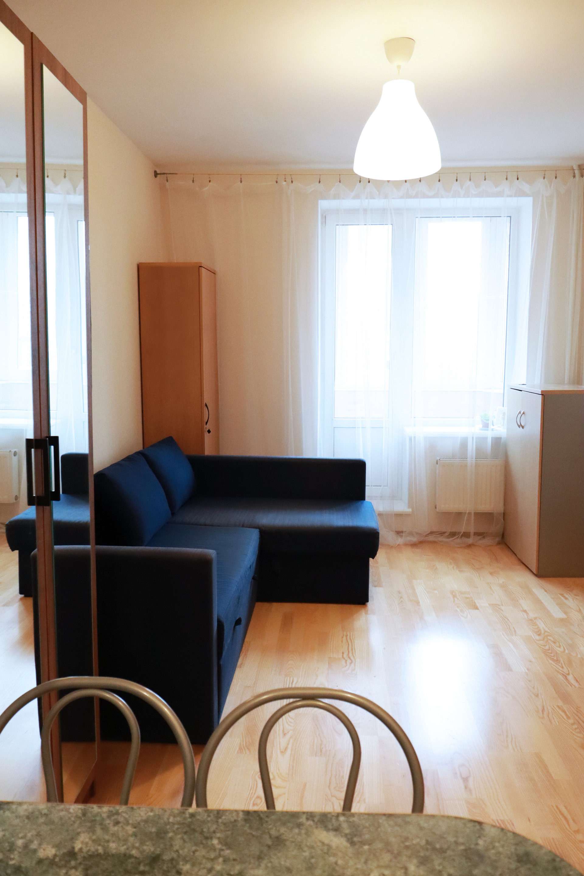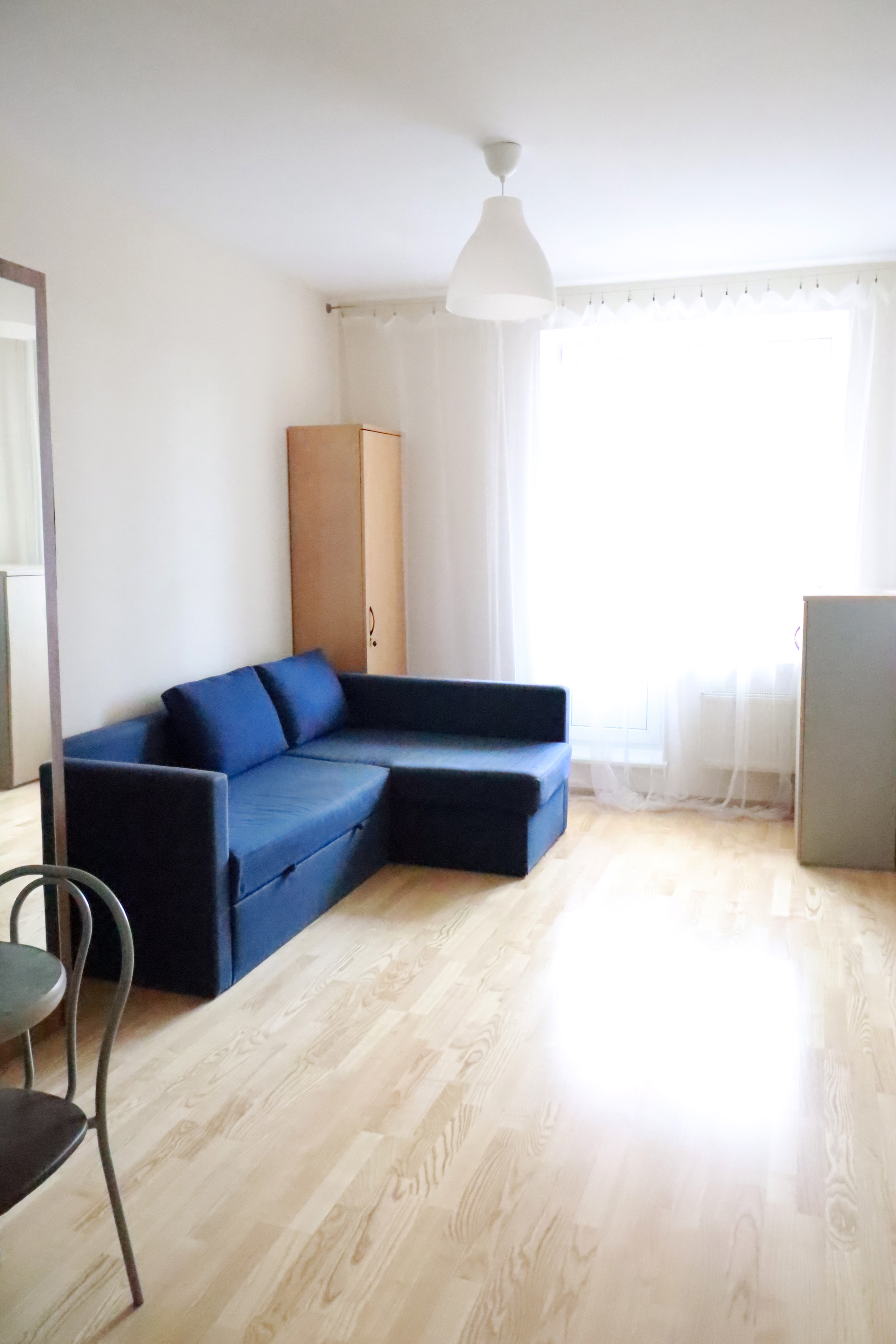 Студия меблирована и укомплектована бытовой техникой. Подходит, как для постоянного проживания, так и для сдачи в аренду.