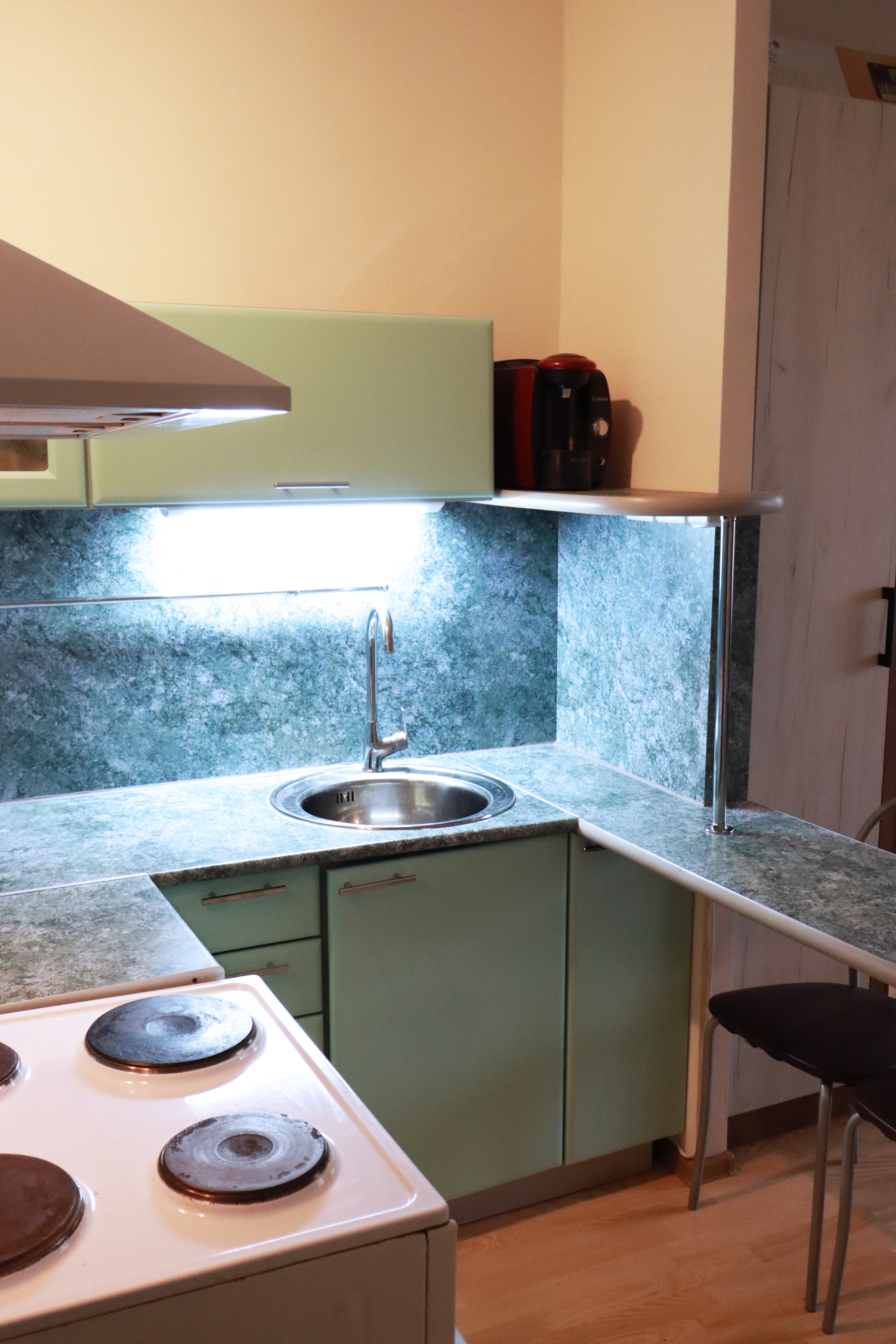 В квартире недавно сделан ремонт : новые полы и обои.