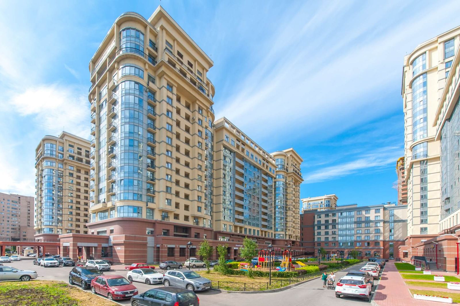 В закрытом комплексе множество магазинов, кондитерских, салонов красоты, учебных комплексов ( разные курсы), фитнес, прекрасно оборудованные детские зоны.