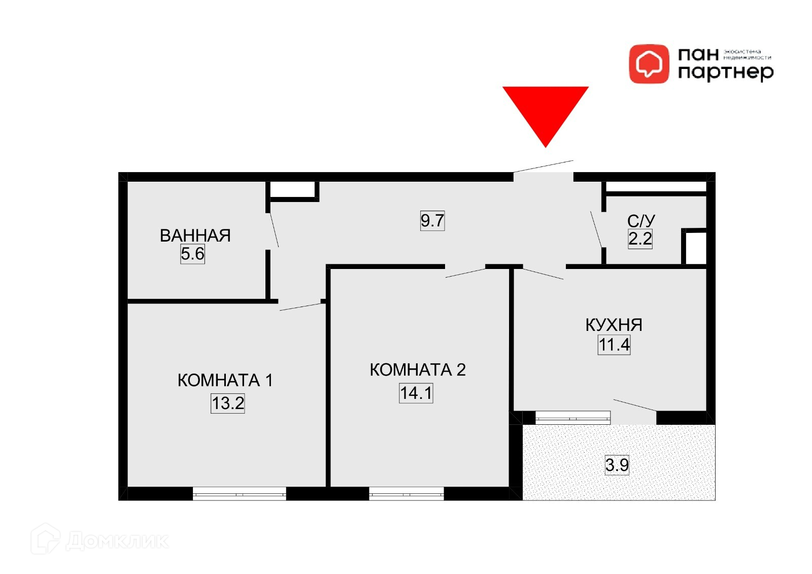Общая площадь 56.5 м2