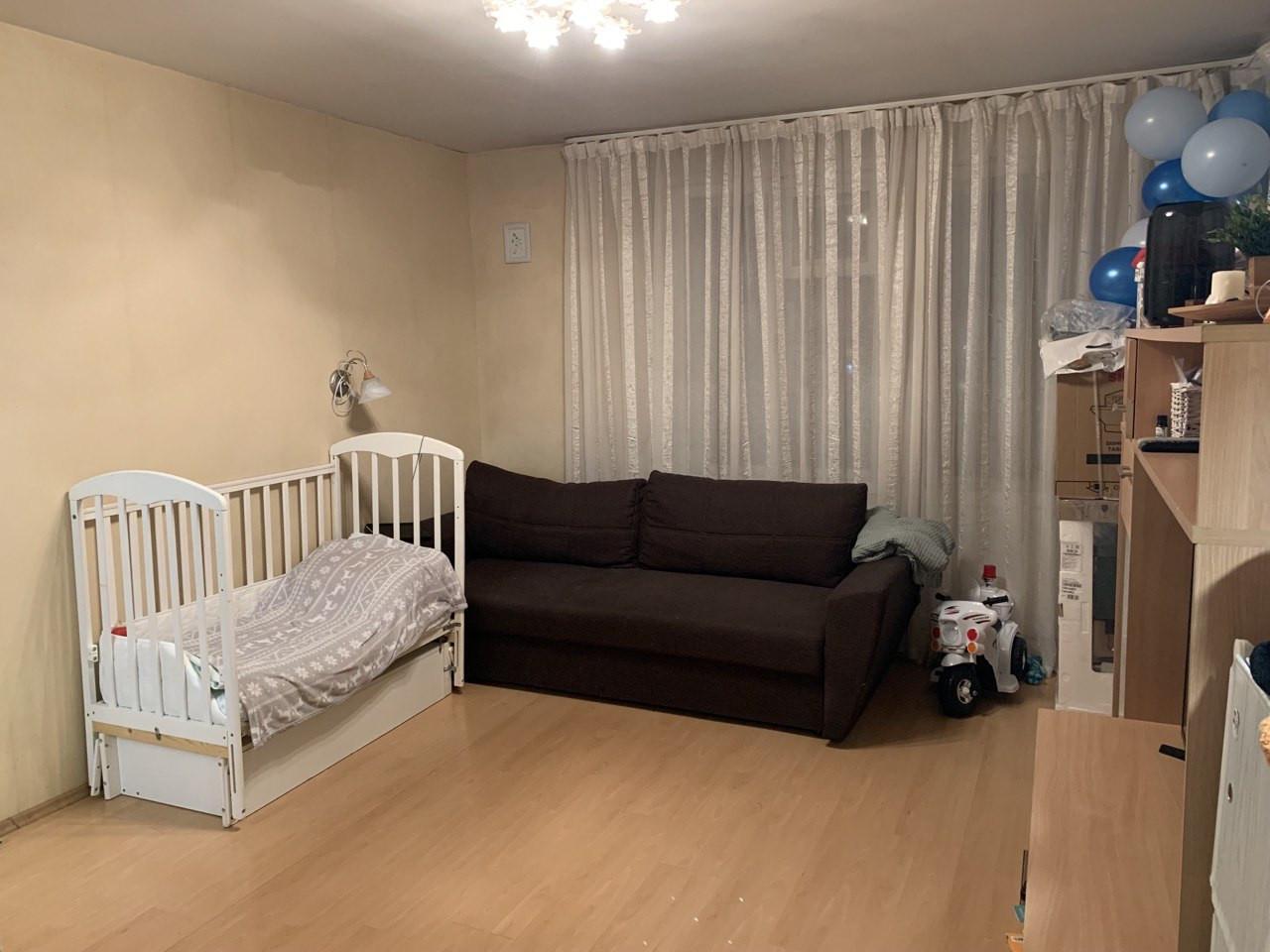 В квартире качественный косметический ремонт, на полу во всей квартире уложен ламинат, в ванной комнате пол и стены -плитка. Частично остаётся мебель и техника.