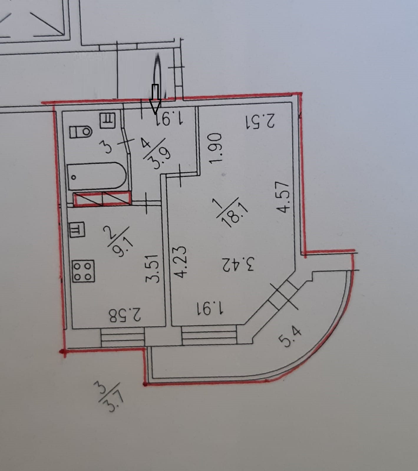 Балкон, лоджия 1 балкон