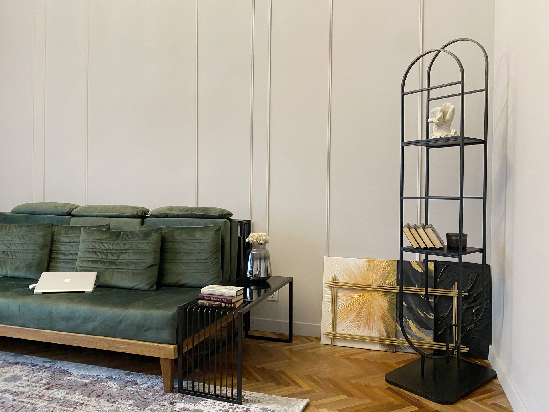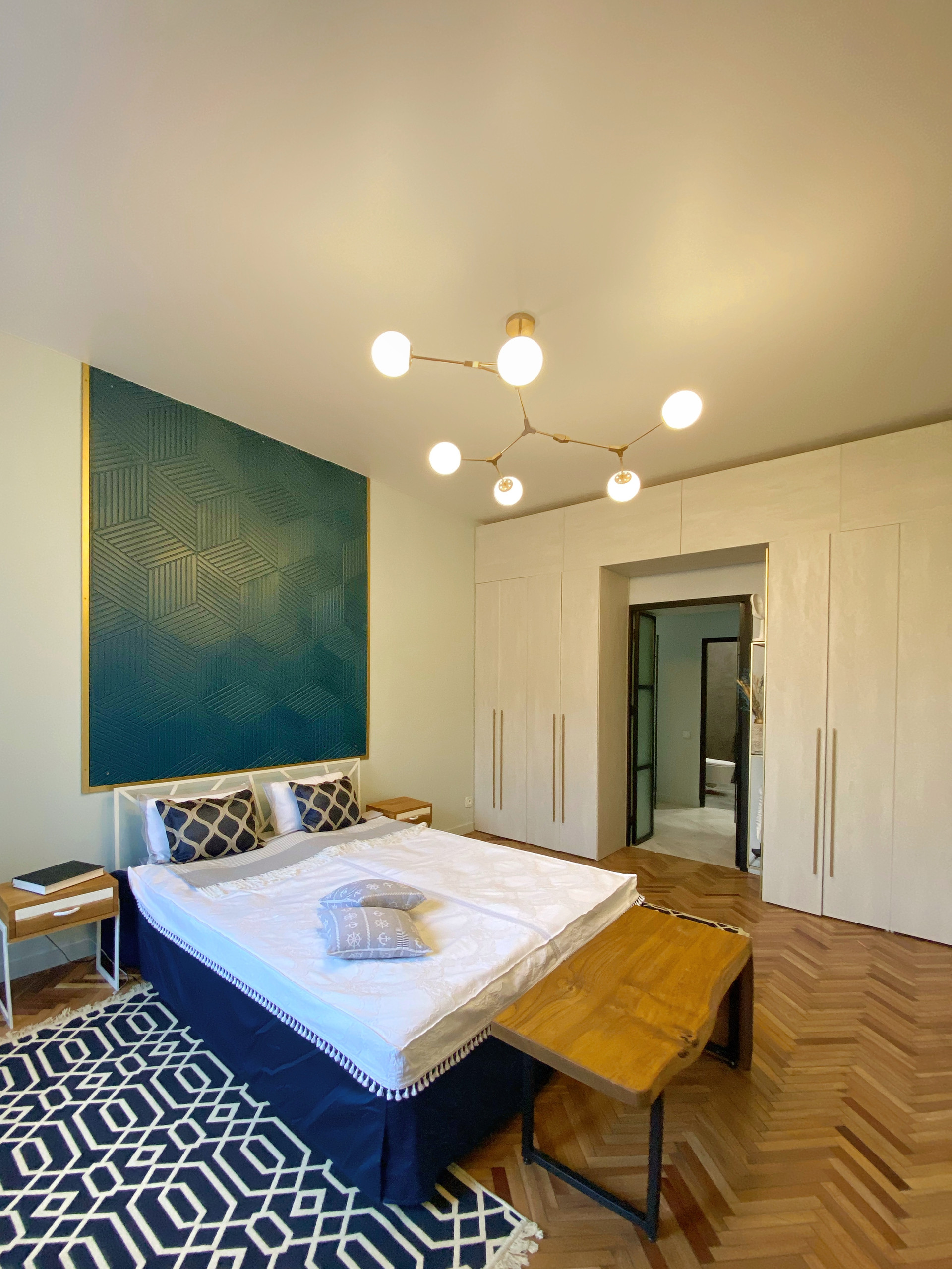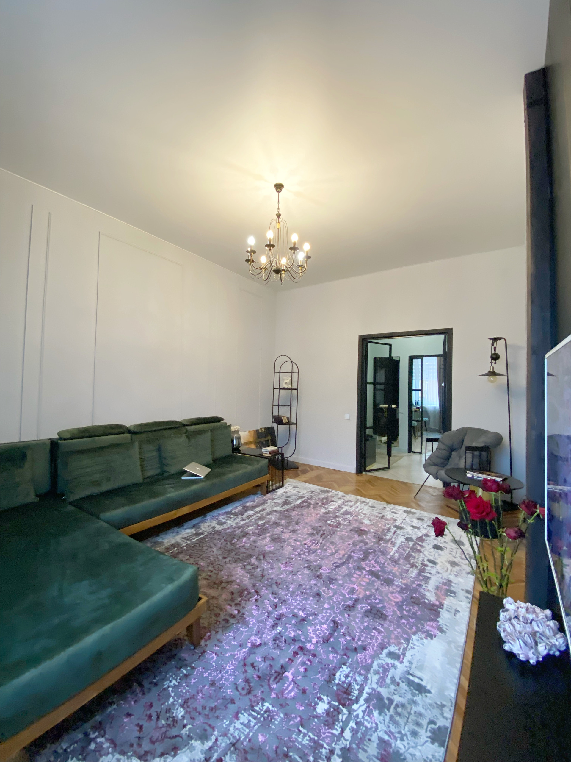 Прекрасный дизайнерский ремонт квартиры. Вся мебель была изготовлена на заказ. Металлические стеклянные межкомнатные двери.