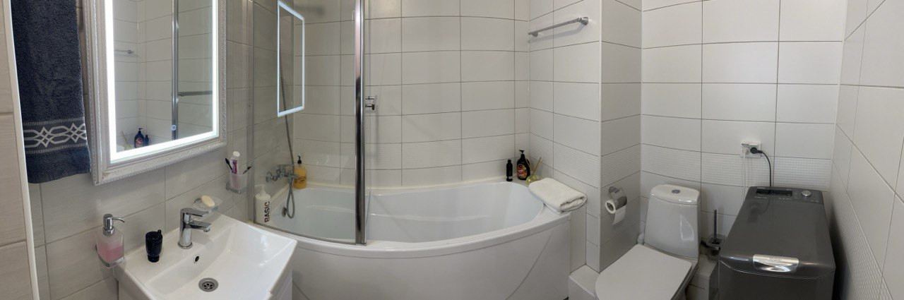 Квартира расположена на 7 этаже, площадь с балконом 63,6 кв м, без балкона - 59,3 кв м, кухня 12,6 кв м, две изолированные комнаты, два санузла. Окна выходят в тихий, закрытый двор (без авто). 4 квартиры на этаже - это дополнительная гарантия приватности. В каждой квартире предусмотрены клапаны индивидуальной вентиляции, в доме установлены фильтры очистки воды до состояния питьевой, Wi-Fi (Интернет, ТВ), регулируемые радиаторы системы отопления. Дополнительно в квартире установлен фильтр тонкой очистки питьевой воды. Отделка квартиры выполнена по итальянскому дизайн-проекту (коллекция Vanilla). Высота потолков 3,06 м. Современный кухонный гарнитур, имеется вся бытовая техника, необходимая для комфортной жизни: холодильник с морозильной камерой Bosch, микроволновая печь, стиральная машина, огромный телевизор Toshiba, встроенные духовой шкаф Electrolux, посудомоечная машина, варочная поверхность с вытяжка. Имеется специальная шахта под систему кондиционирования. Балкон с полностью сдвигаемым безрамным остеклением и подогреваемым полом (керамогранит) и освещением (лаундж зона). Два санузла (в каждом из которых имеется унитаз и мебель), гигиенический душ, в ванной комнате - акриловая ванна, подогреваемый пол, стиральная машина, мебель. В комплексе можно приобрести подземное парковочное машиноместо (лифт спускается в подземный паркинг).