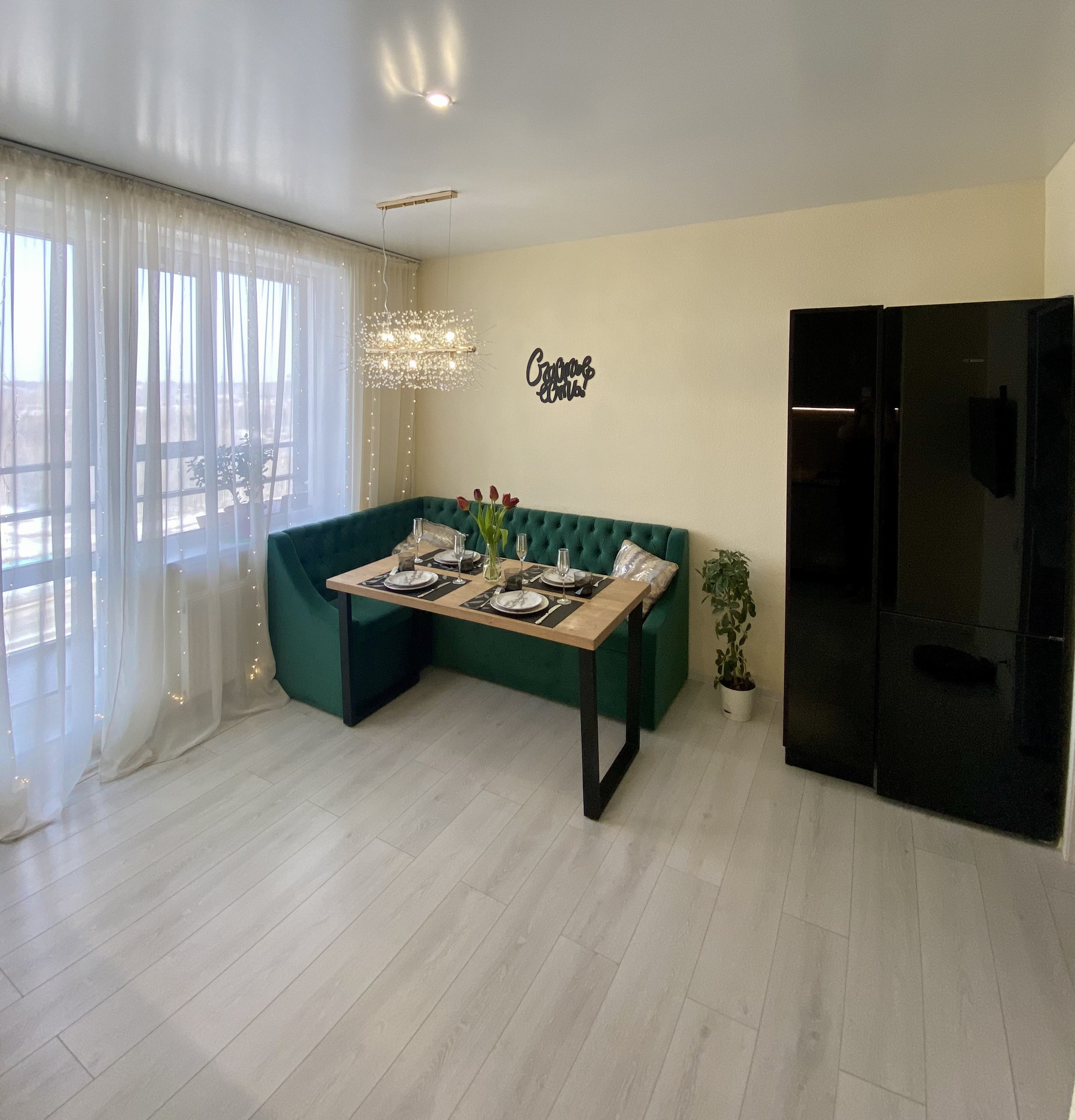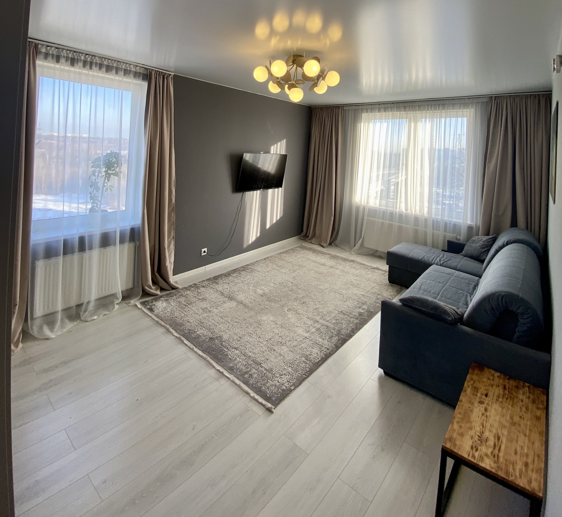 Солнечный свет рождается с жилого пространства, далее следует в кухню, большую часть дня комнаты залиты светом. При этом в теплое время в квартире абсолютно не жарко – угловое расположение позволяет создать приятную летнюю прохладу. В то же время в холодное время тепло, батареи оснащены регулировкой подачи отопления, ни разу не чувствовали холода, всегда было комфортно.