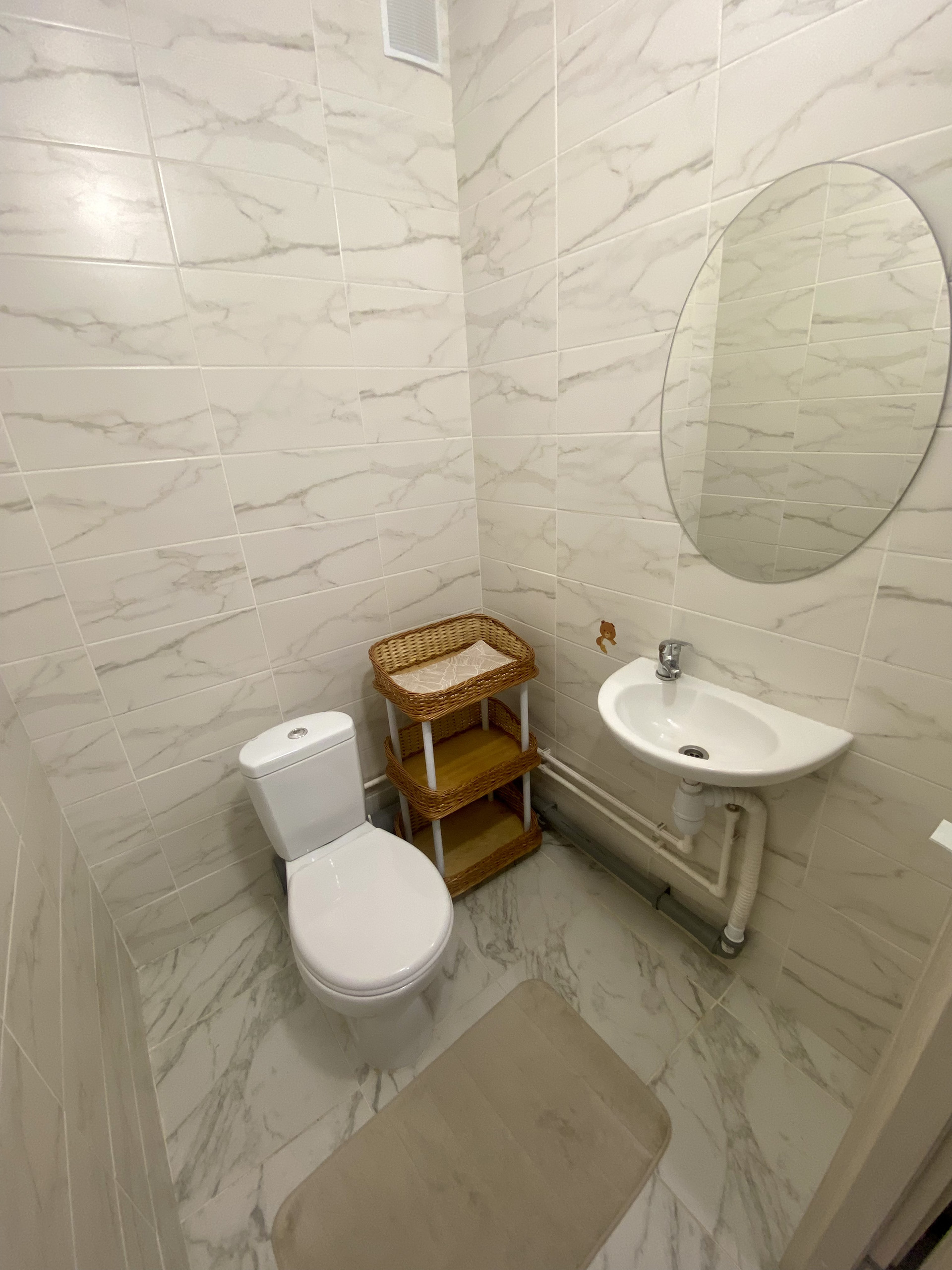 Санузел раздельный, ванная комната выполнена в светлых мягких тоннах.