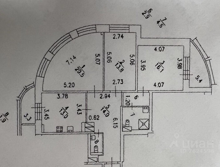 3-комнатная квартира, 86.8 м2, этаж 7 / 16, на продажу в Санкт-Петербурге, Варшавская улица, 69к3