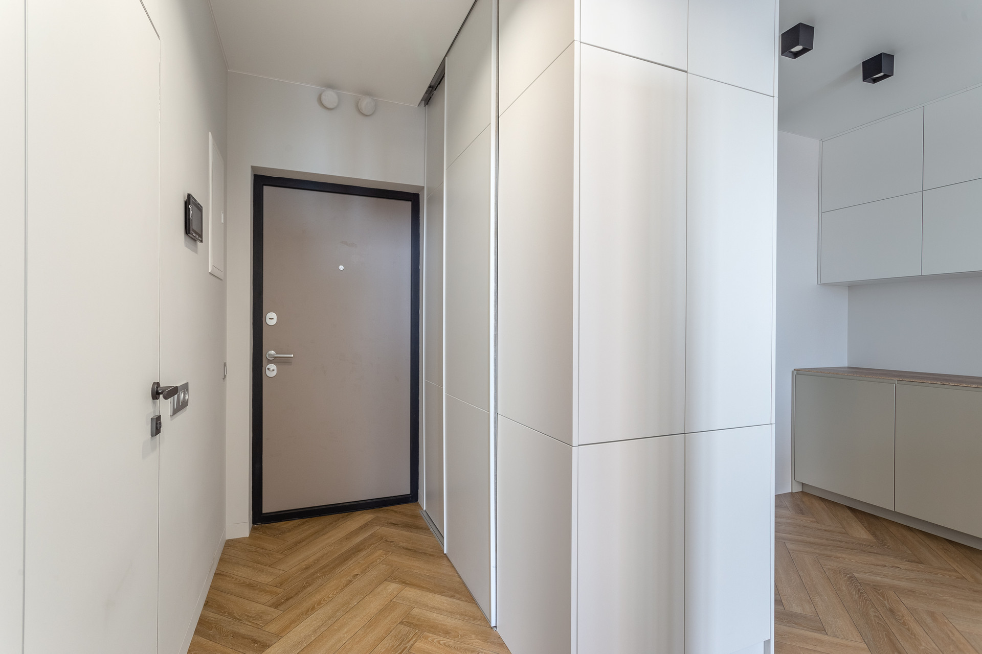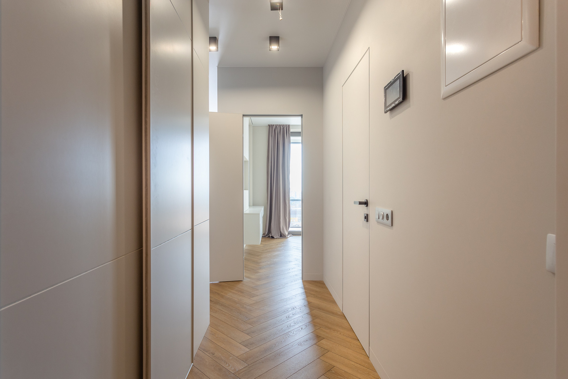 - На полу кварцвинил, в ванной и балконе - плитка с функцией подогрева, гигиенический душ, подвесной унитаз, потолки скрытые навесные.