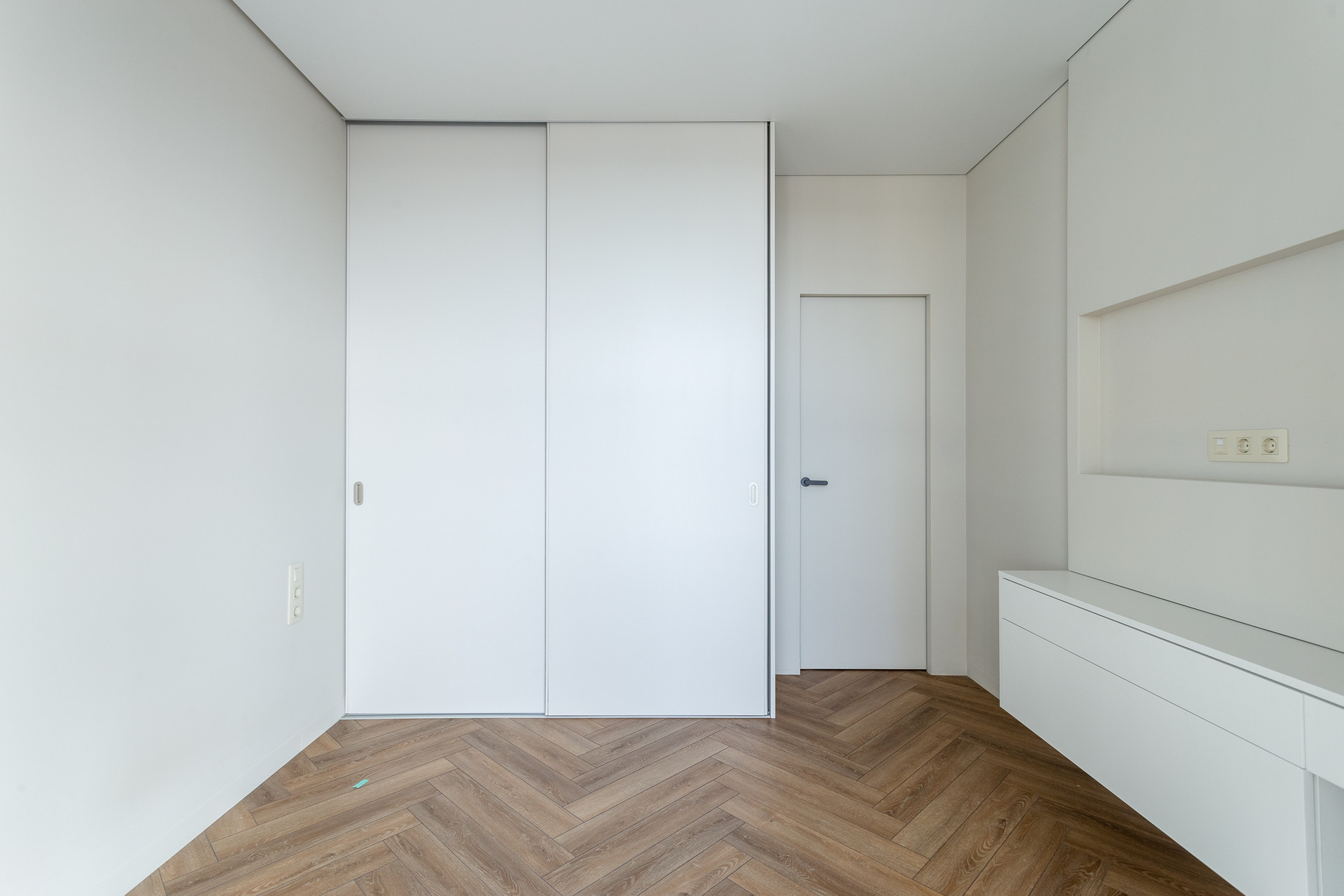 - В спальне: встроенный шкаф настенный радиатор, консоль с туалетным столиком