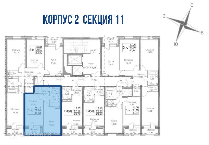 Общая площадь 38.9 м2