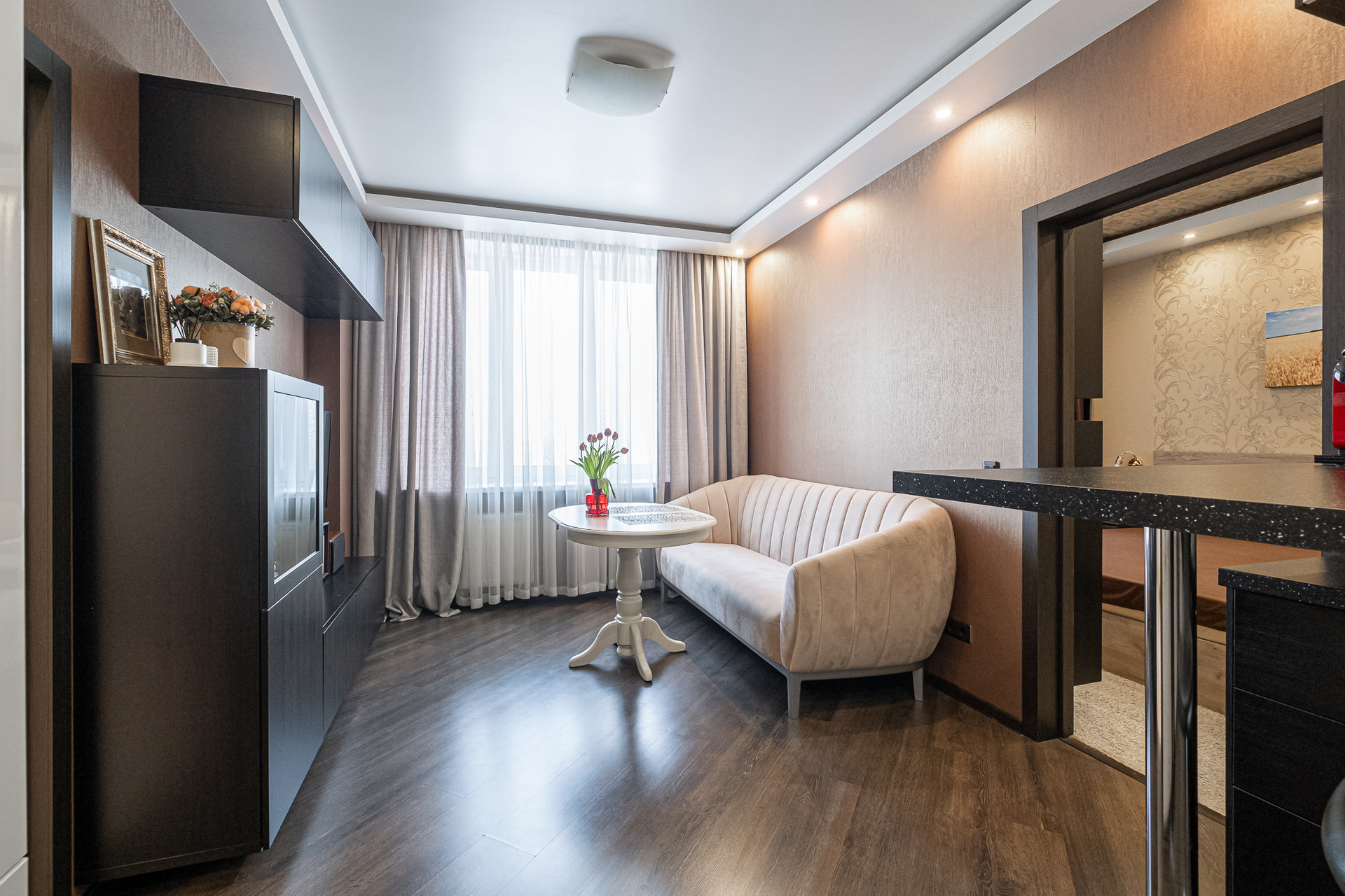 В квартире произведена перепланировка для того, чтобы каждый сантиметр был максимально использован: