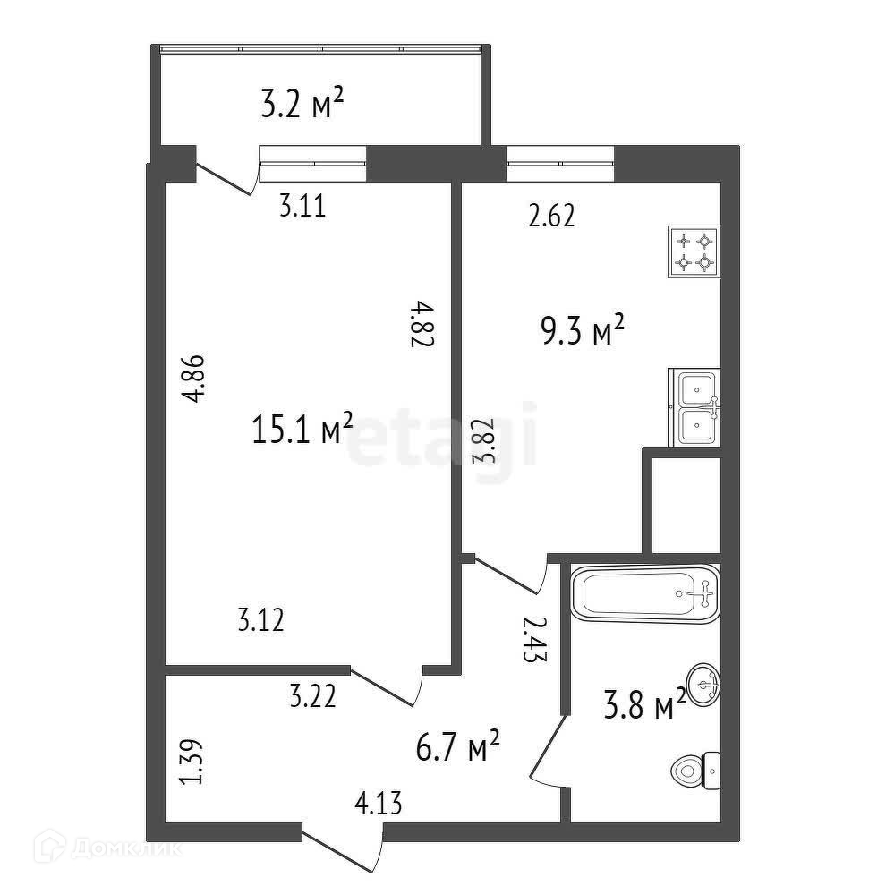 Общая площадь 34.9 м2
