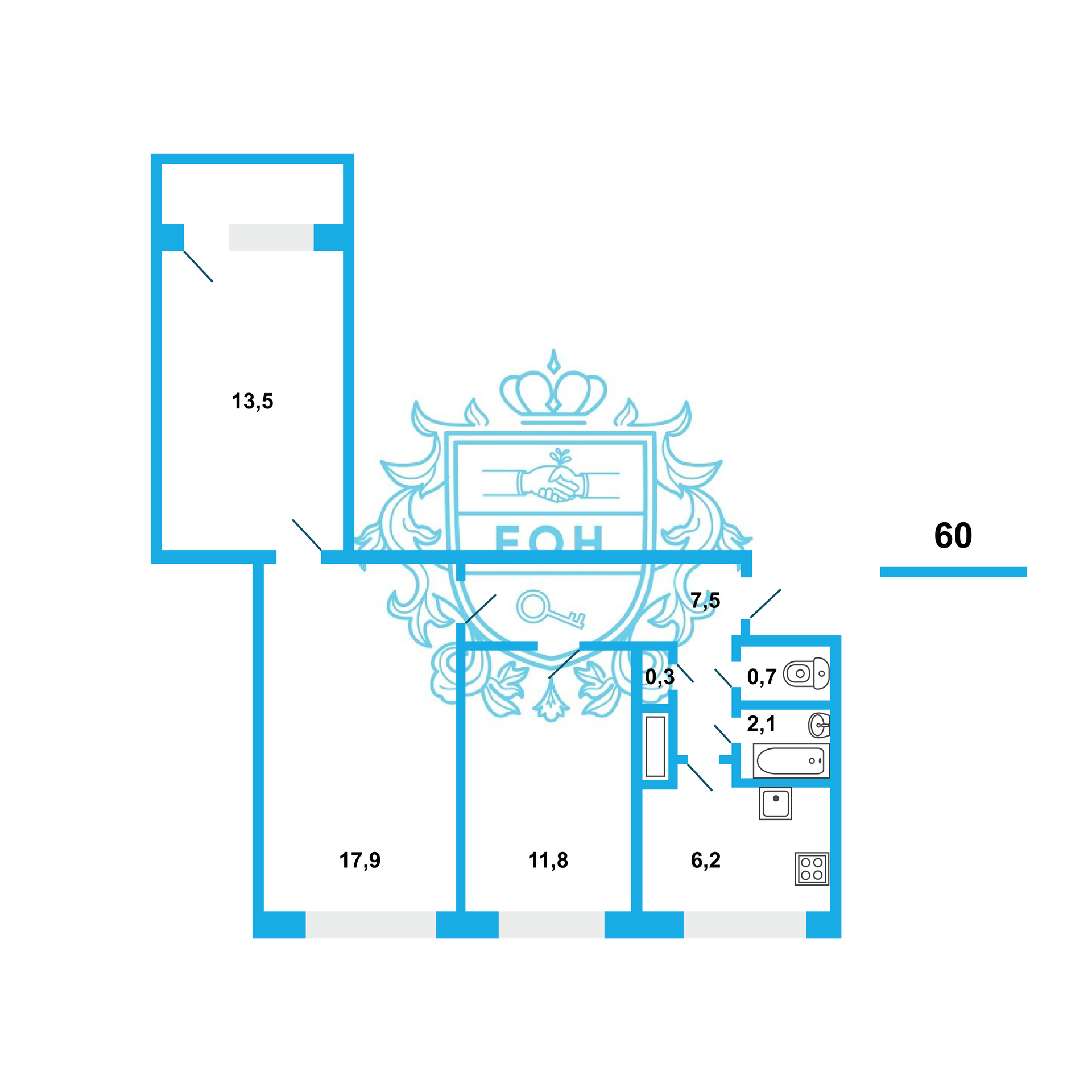 Общая площадь 60 м2
