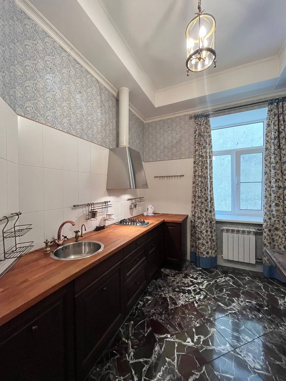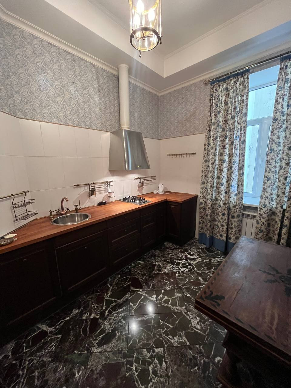 Дизайн-проект. Потрясающий ремонт. Коллекционные обои - Англия, Италия, полы - доска, мрамор. Дорогая сантехника.