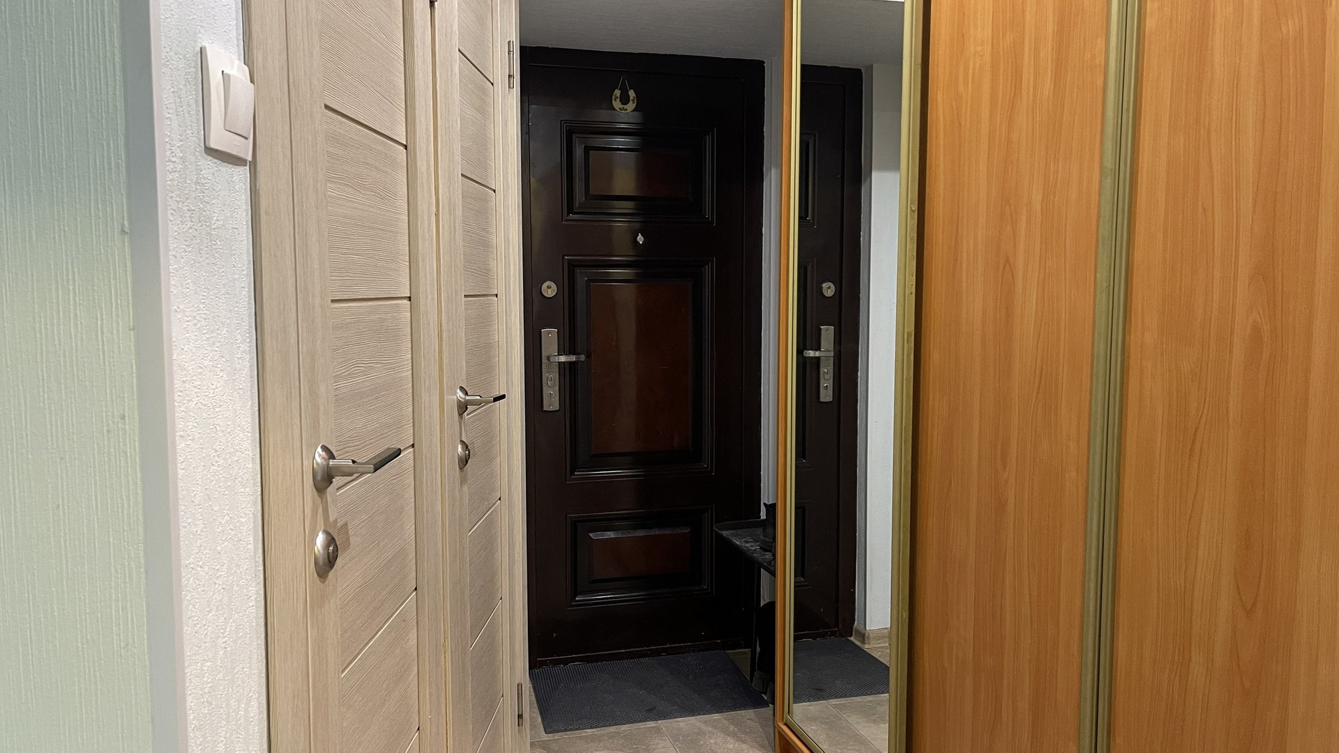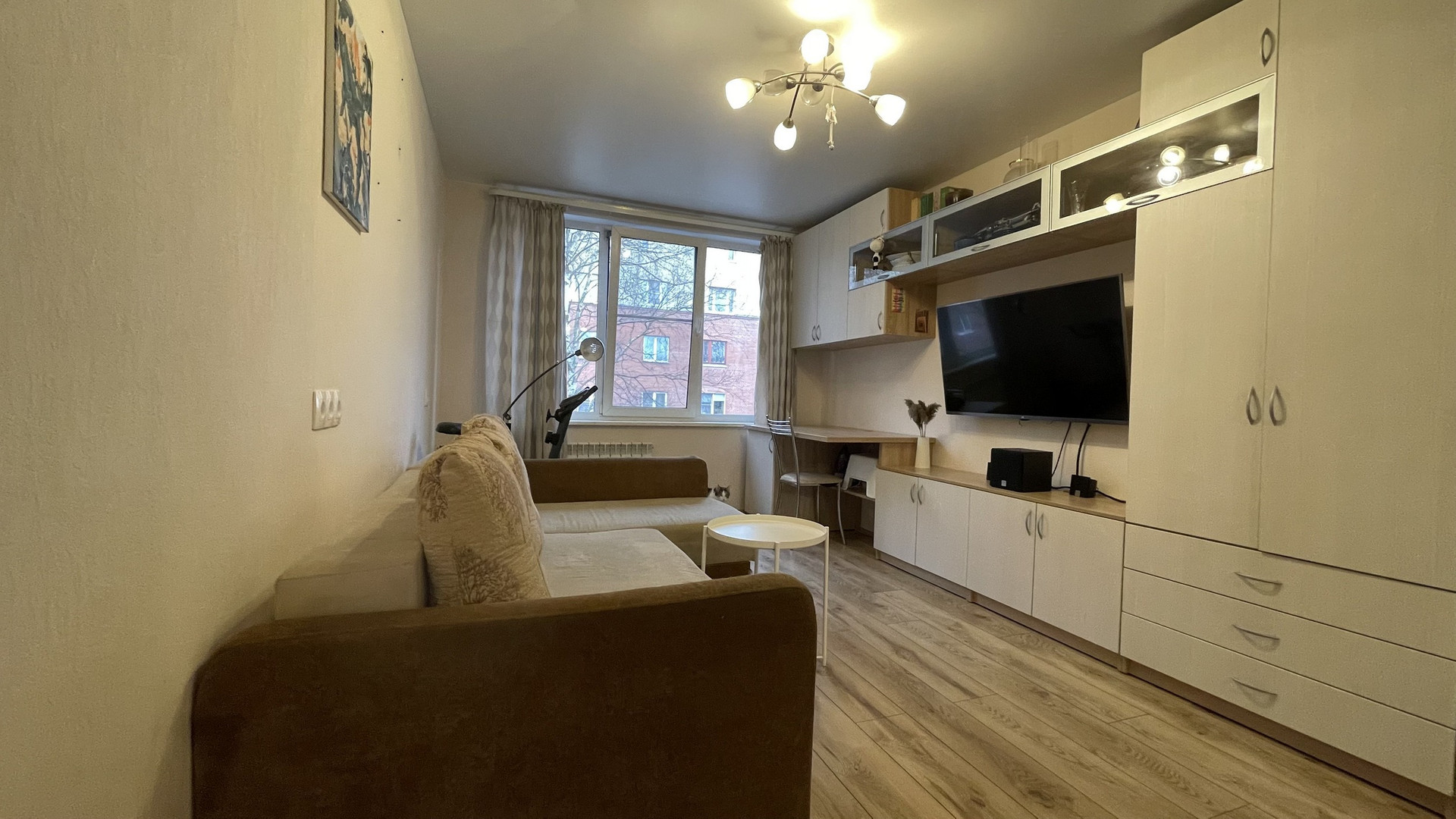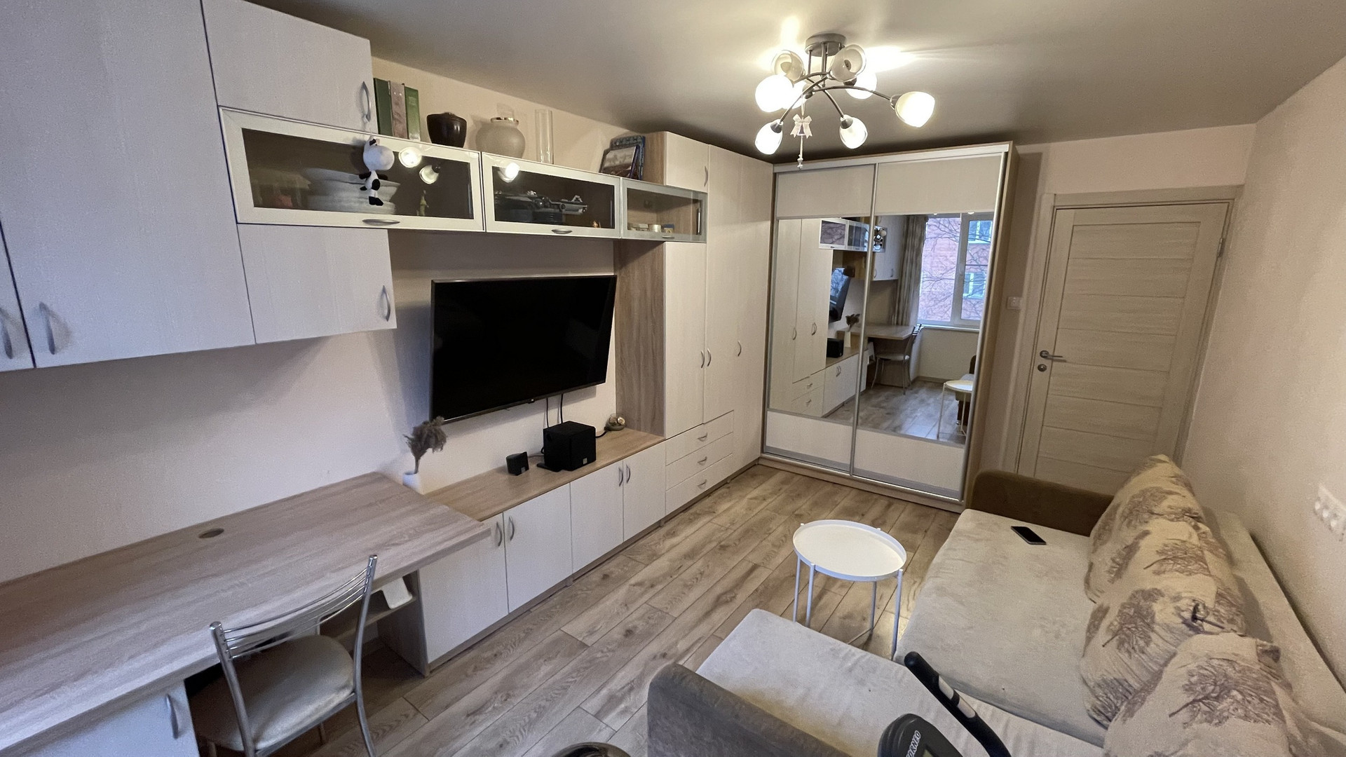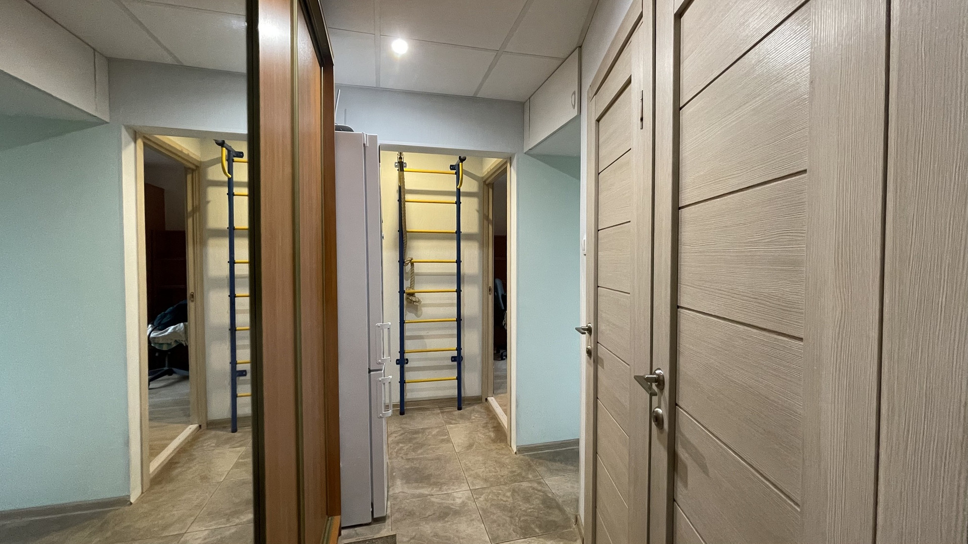 Квартира двухсторонняя. Общая площадь 45,3 м2. Комнаты изолированные – 15,28 и 12,17 м2, раздельный санузел, кухня 7,3 м2. В квартире расположена вместительная кладовка 1,5 м2, из которой можно сделать гардеробную, 2 антресоли, натяжные потолки. Окна – стеклопакеты. Пол на кухне, в коридоре и санузле плитка, в комнатах ламинат. Последний этаж – никто не шумит сверху, квартира очень теплая.