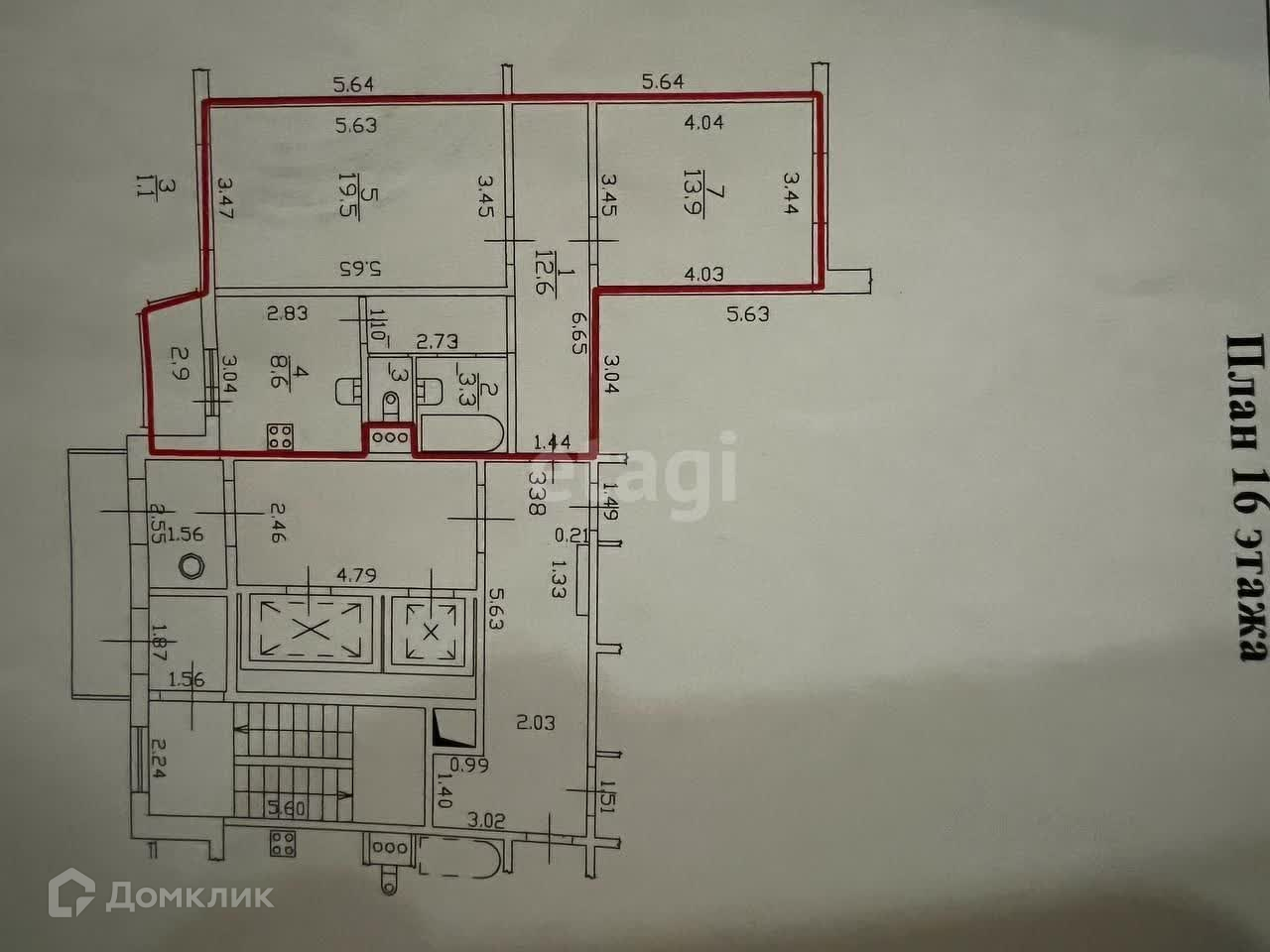 1)Жилая комната: 19,5 м²