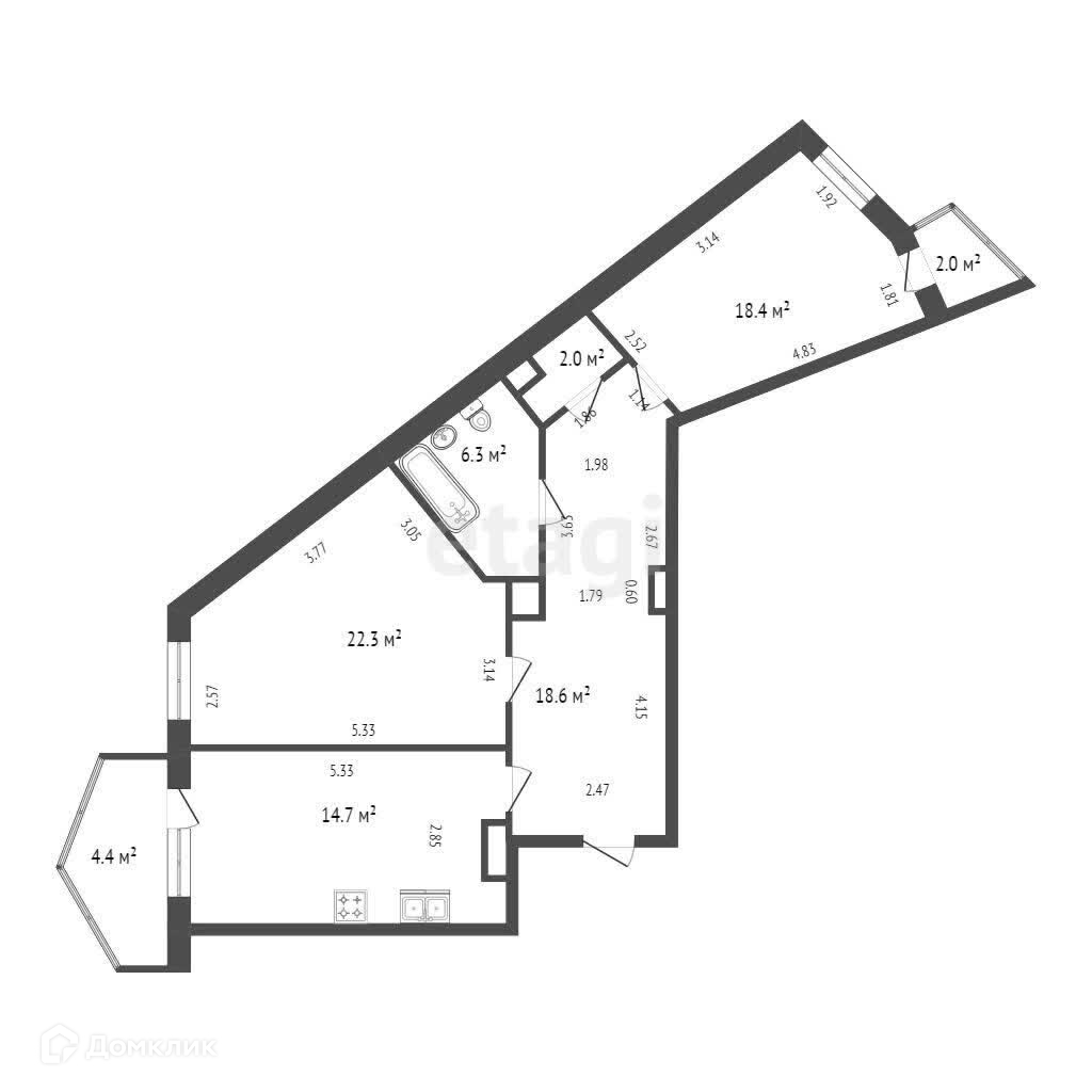 Общая площадь 82.3 м2