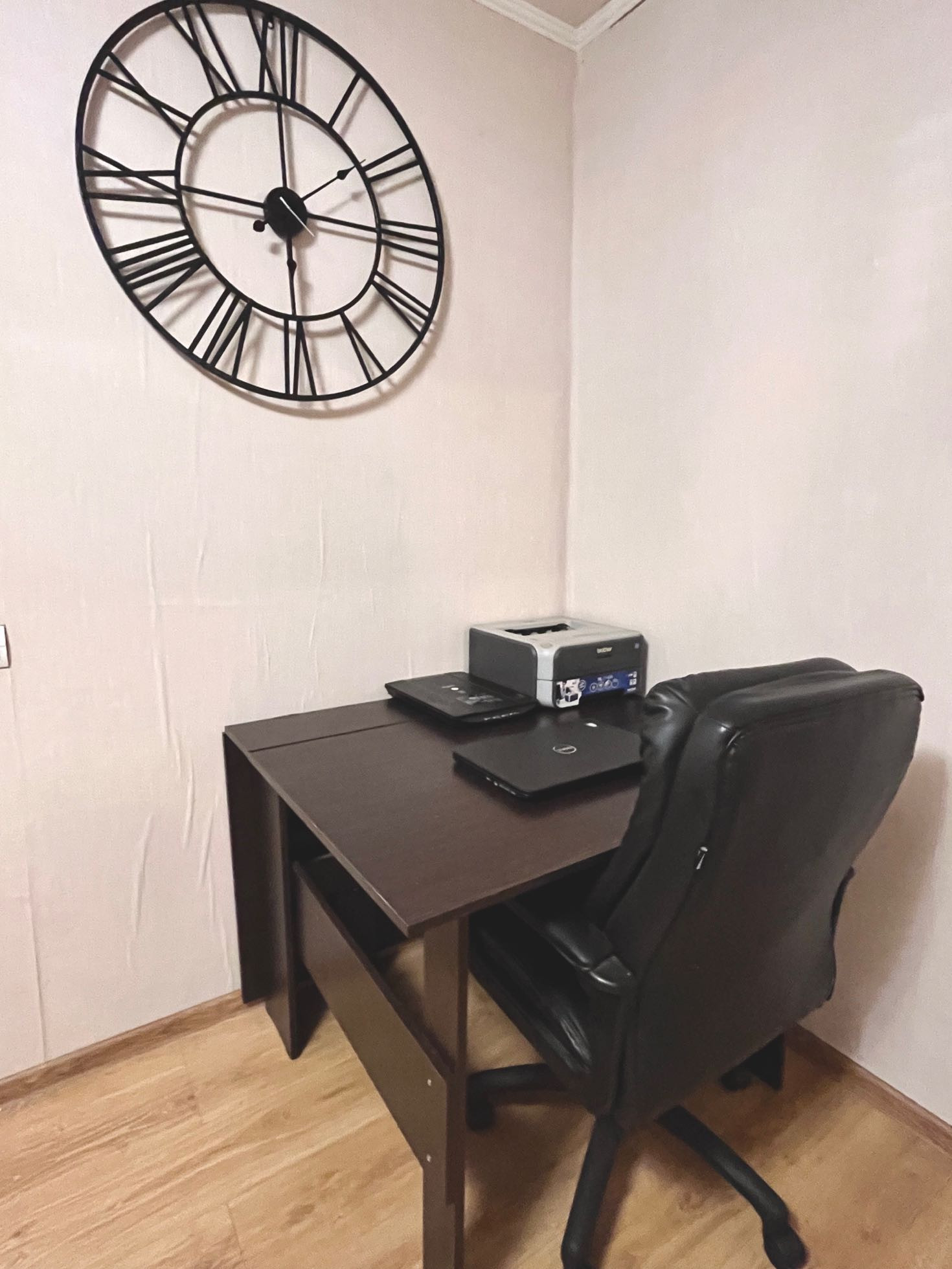 В маленькой комнате: большие шкафы для вещей и одежды, секретер, установлено много видов  освещения, одноместный раскладной диван-кровать.