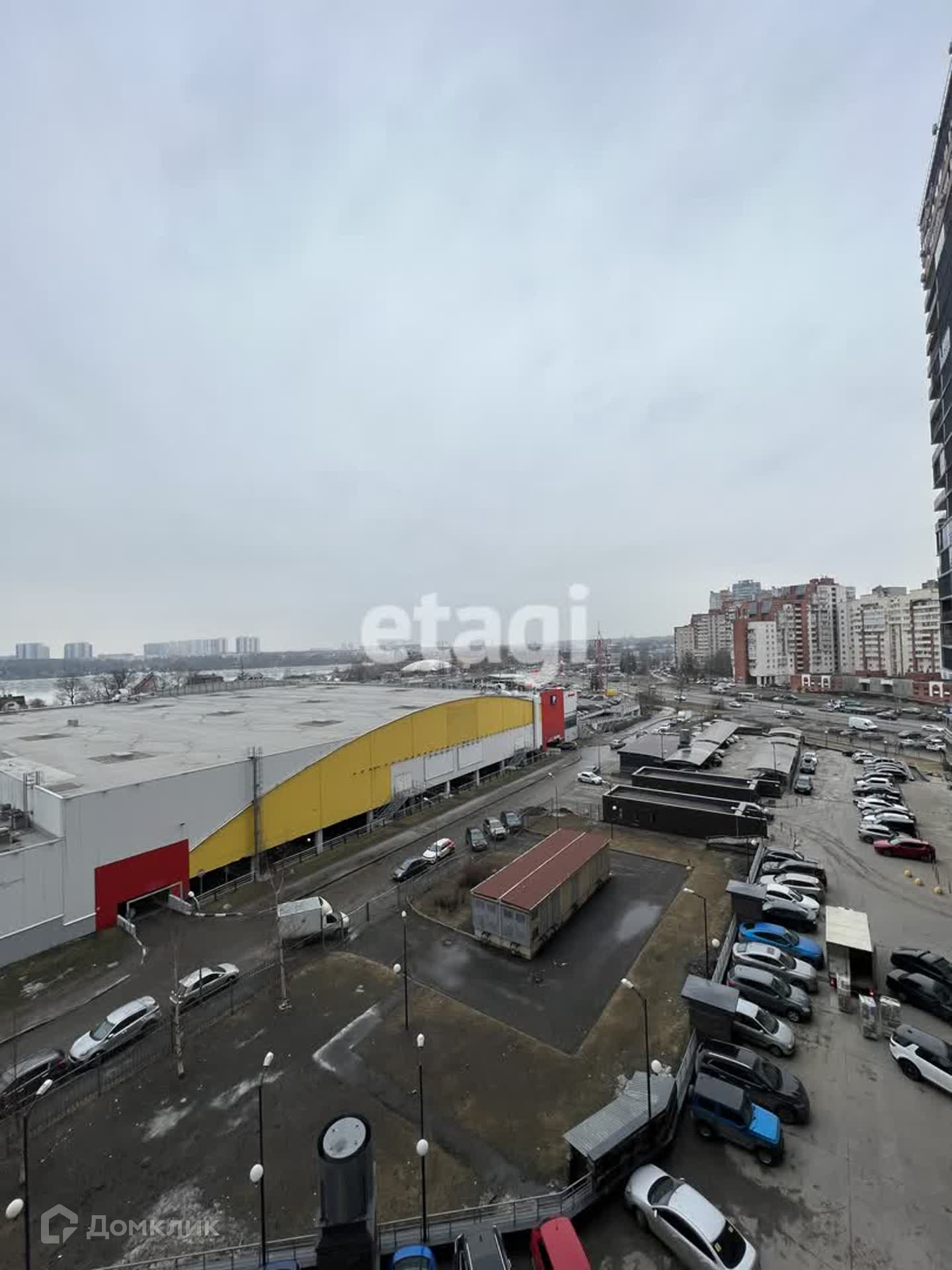 Окна выходят на северо-запад в сторону гипермаркета Окей