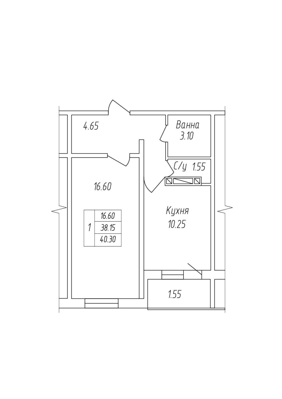 Общая площадь 40.3 м2