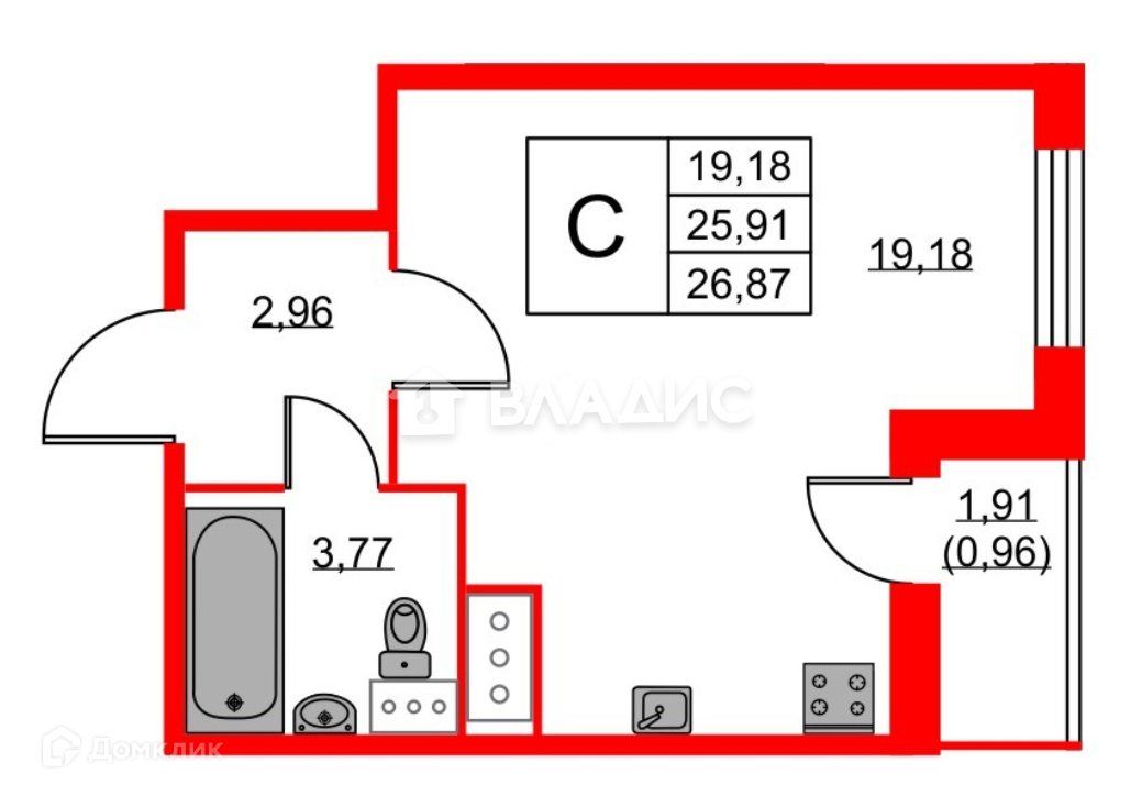 Вашему вниманию предлагается уютная студия, общей площадью 26,9 м², с чистовой отделкой (White box)!