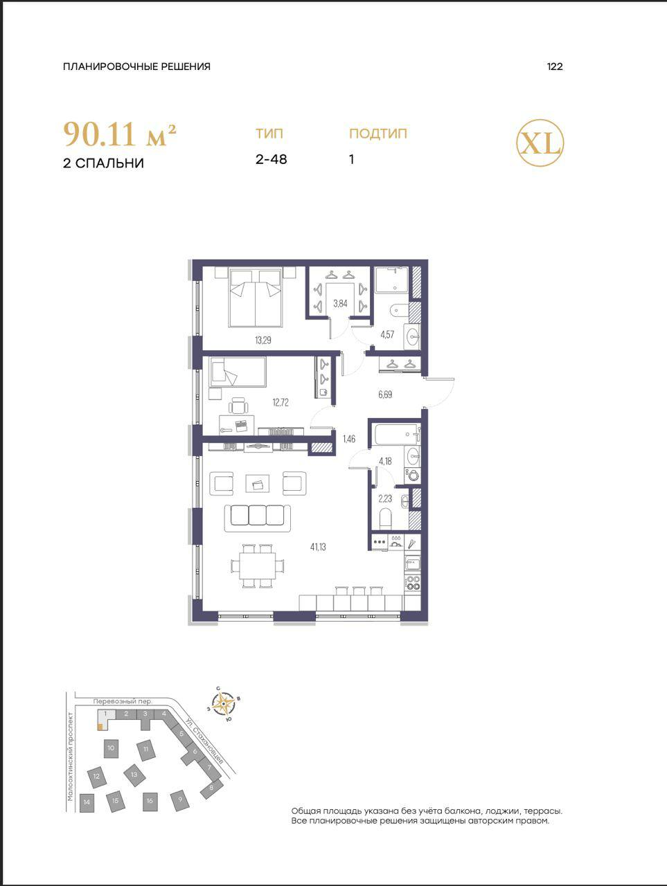 Общая площадь 90.09 м2