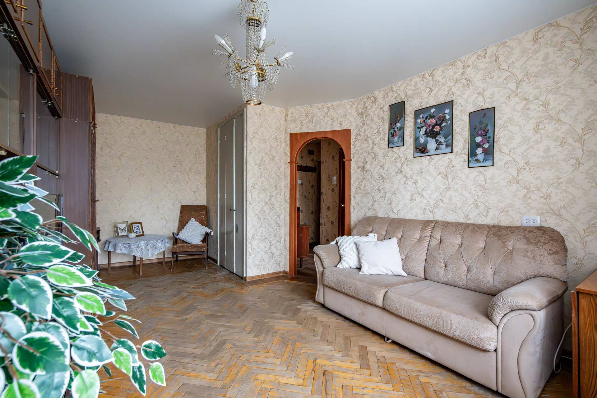 Большая жилая комната с выходом на застекленный балкон