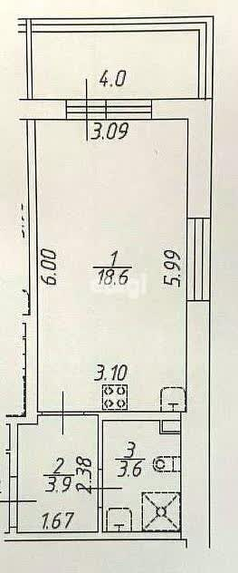 Площадь кухни 3 м2