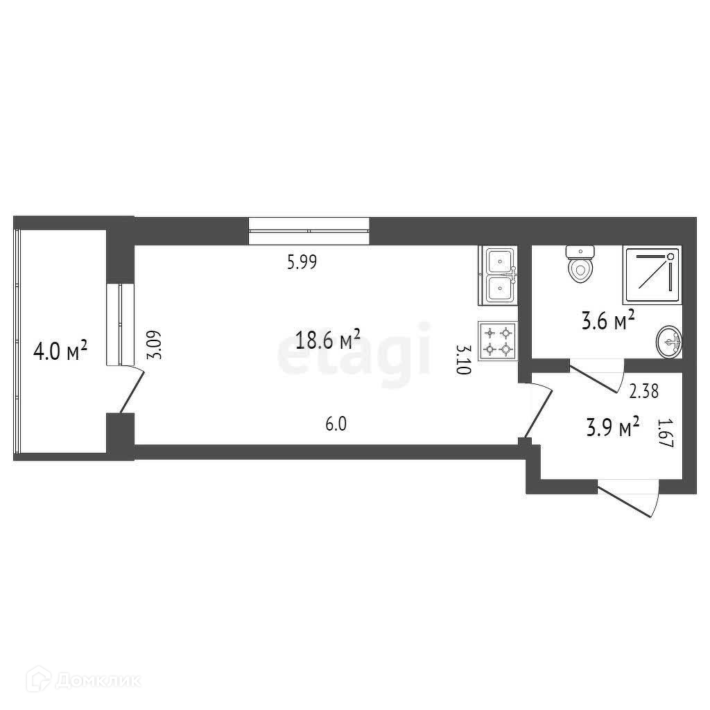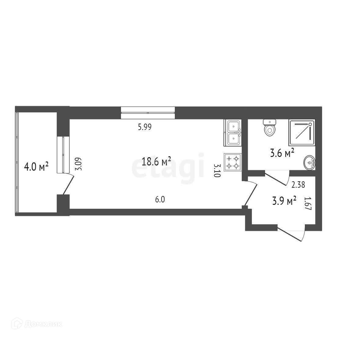 Общая площадь 26.1 м2