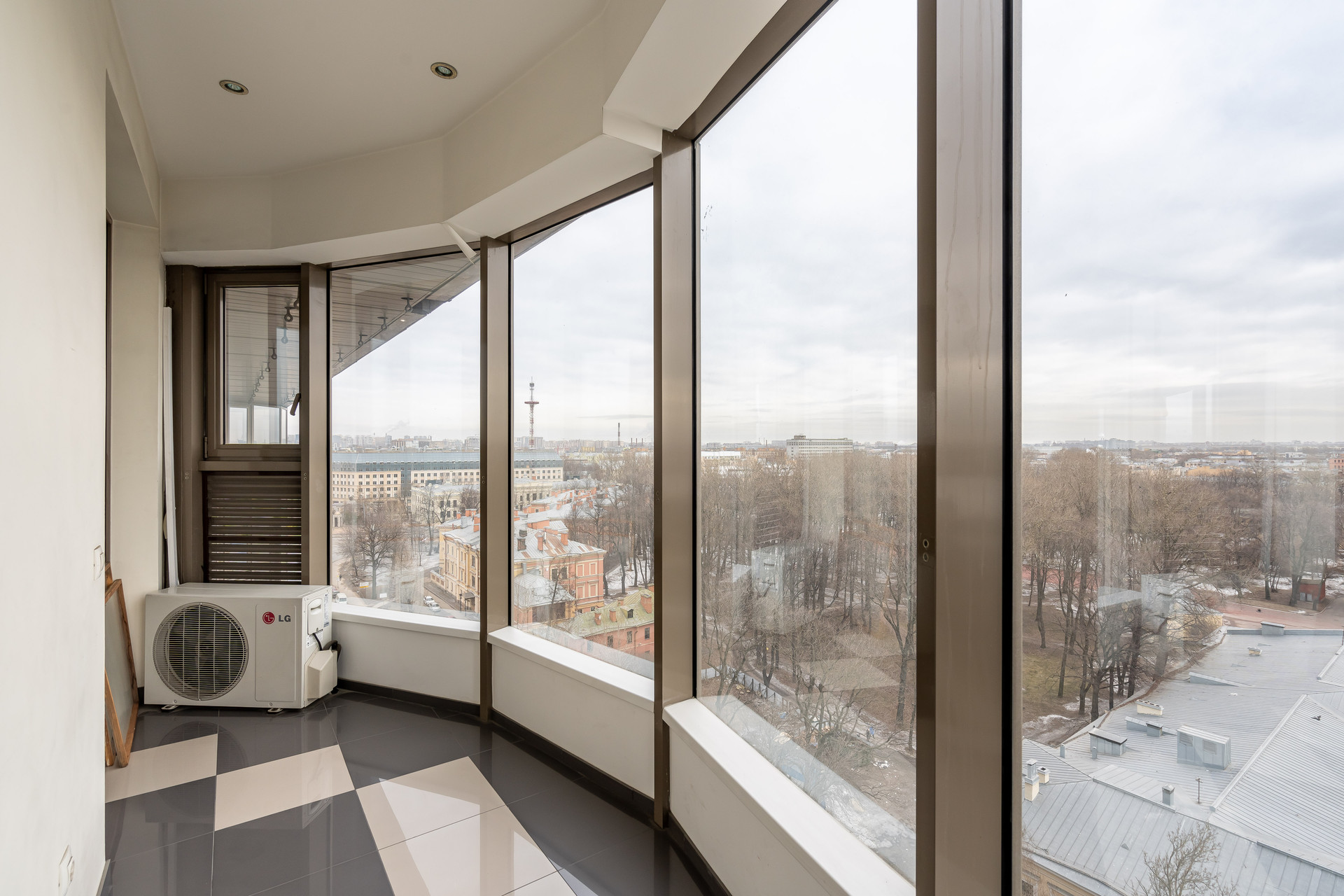 С лоджии открывается величественный панорамный вид на акваторию Невы, Литейный мост, парк Военно-медицинской академии. Вид на весь город, эффектно подсвеченный в вечернее время. Исторический центр Санкт-Петербурга. В пешей доступности станция метро Площадь Ленина и Финляндский вокзал.
